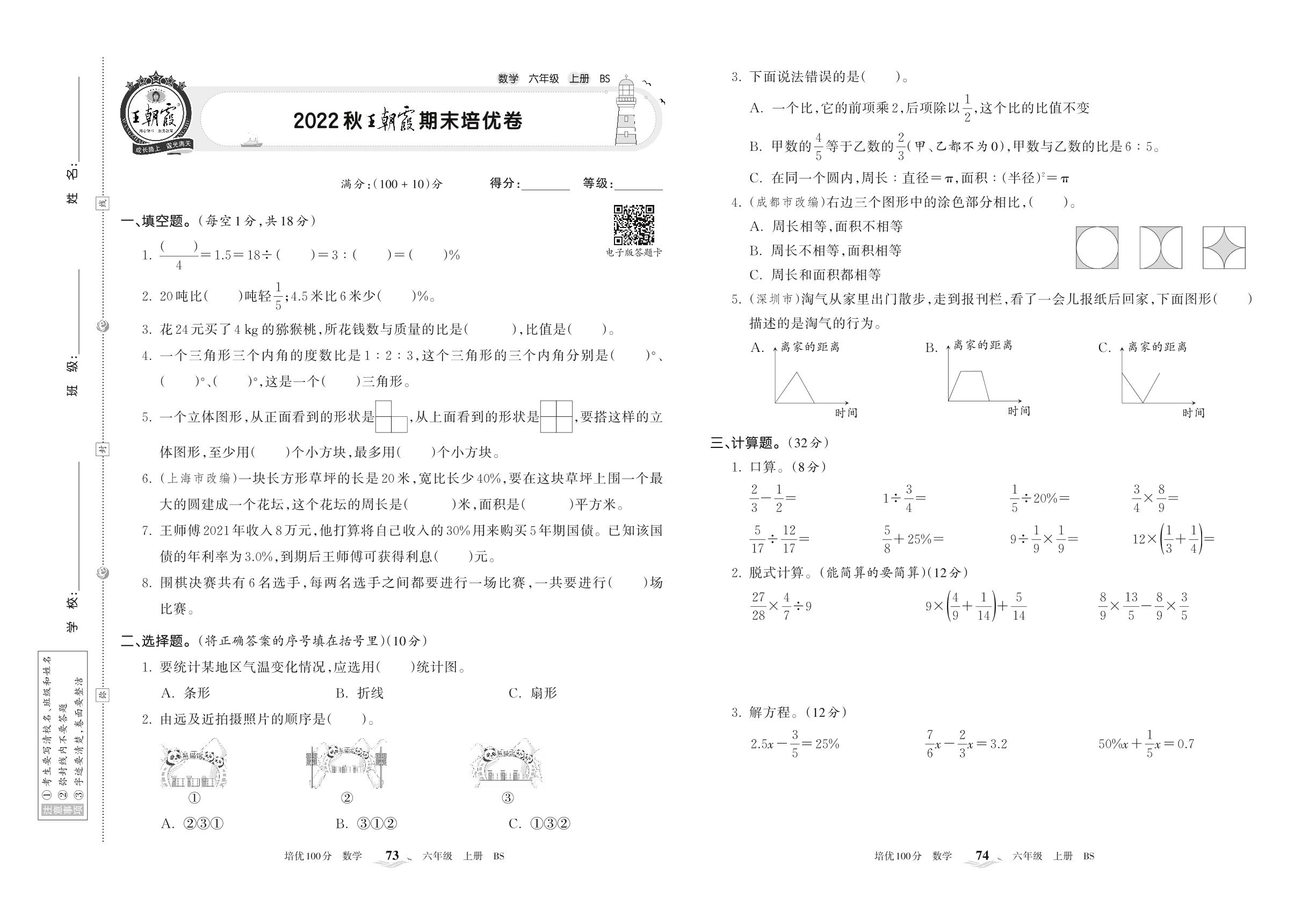 2022上册六年级数学北师版 2022秋王朝霞期末培优卷