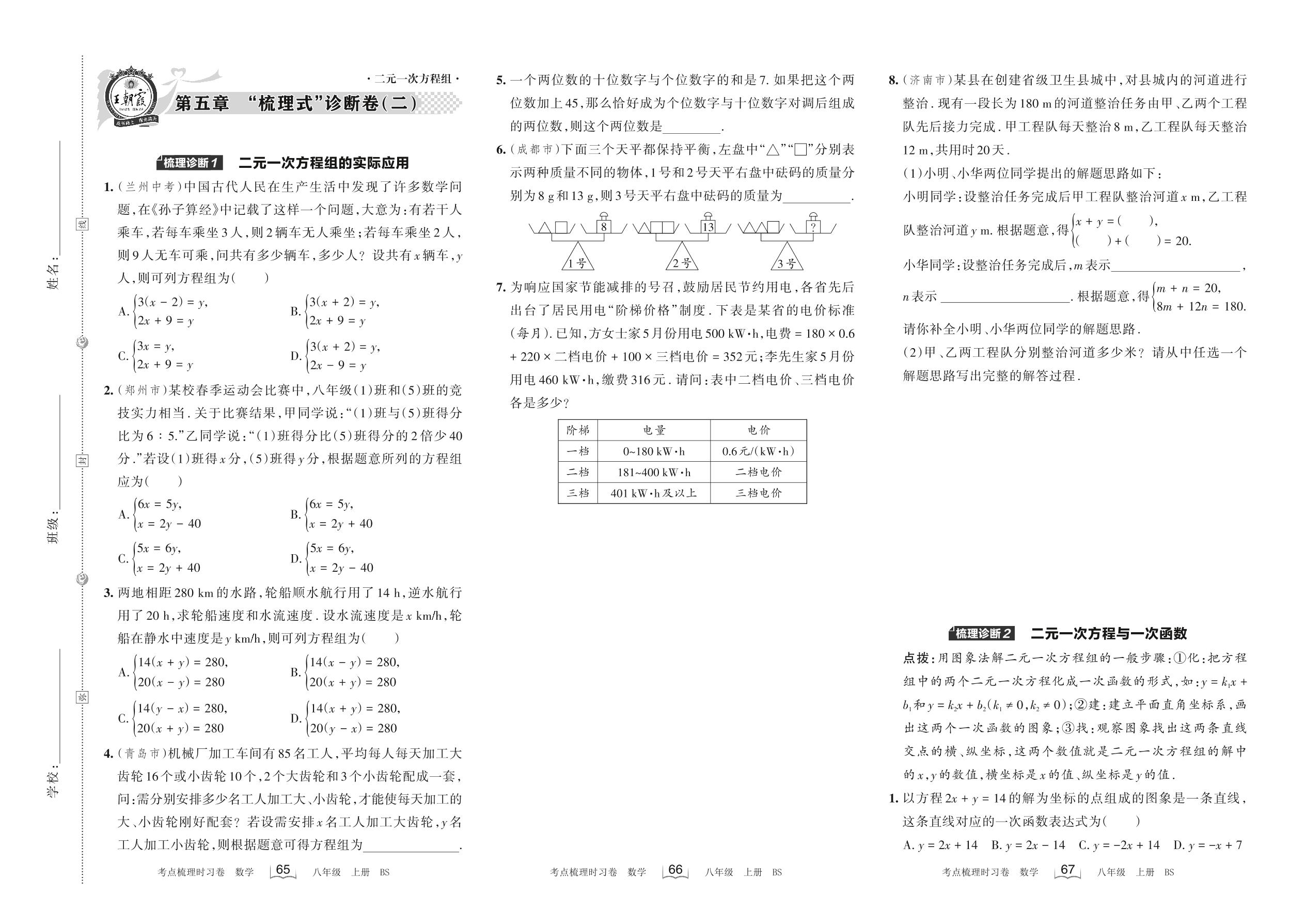 2022上册八年级数学北师版 第五章 “梳理式”诊断卷 (二)