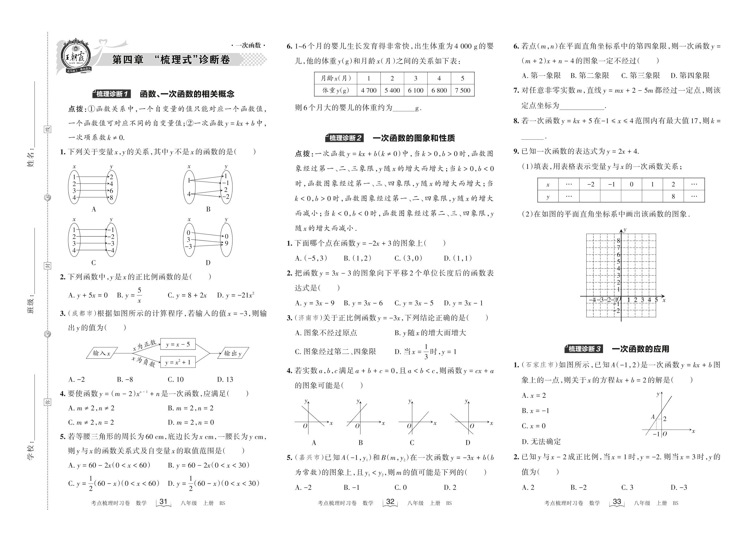 2022上册八年级数学北师版 第四章 “梳理式”诊断卷