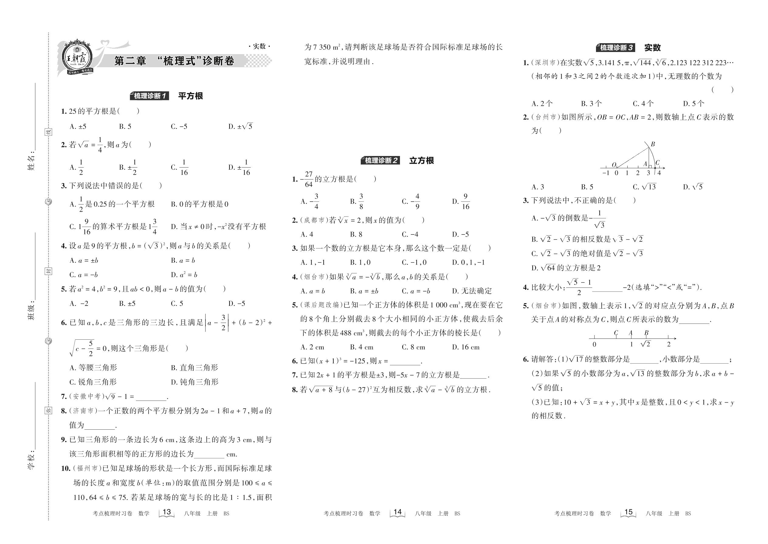 2022上册八年级数学北师版 第二章 “梳理式”诊断卷