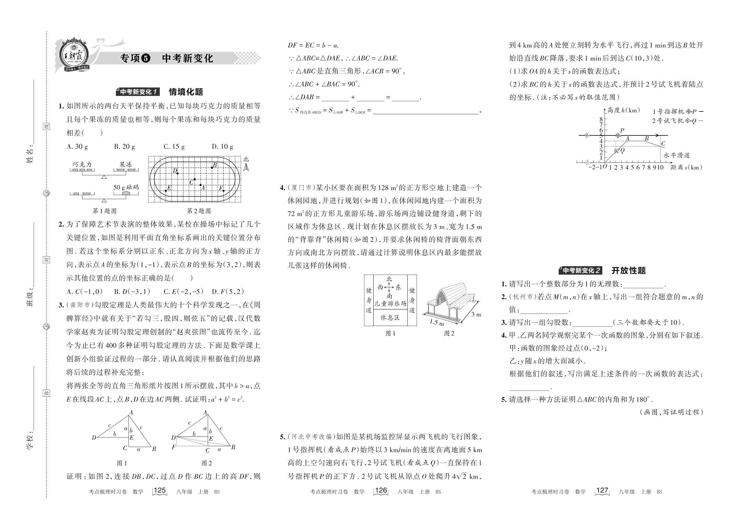 2022上册八年级数学北师版 专项5 中考新变化