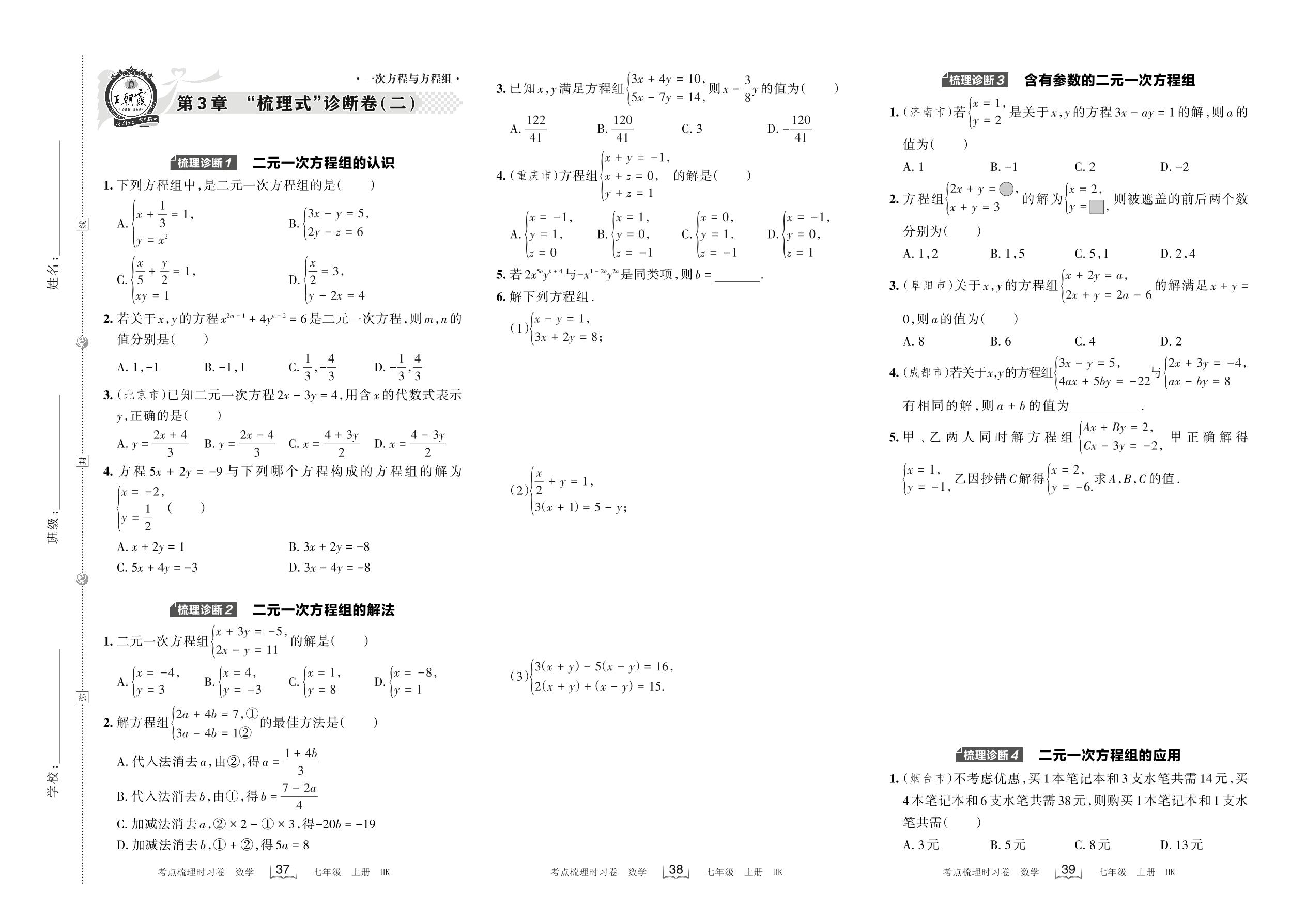 2022上册七年级数学沪科版 第3章 “梳理式”诊断卷(二)