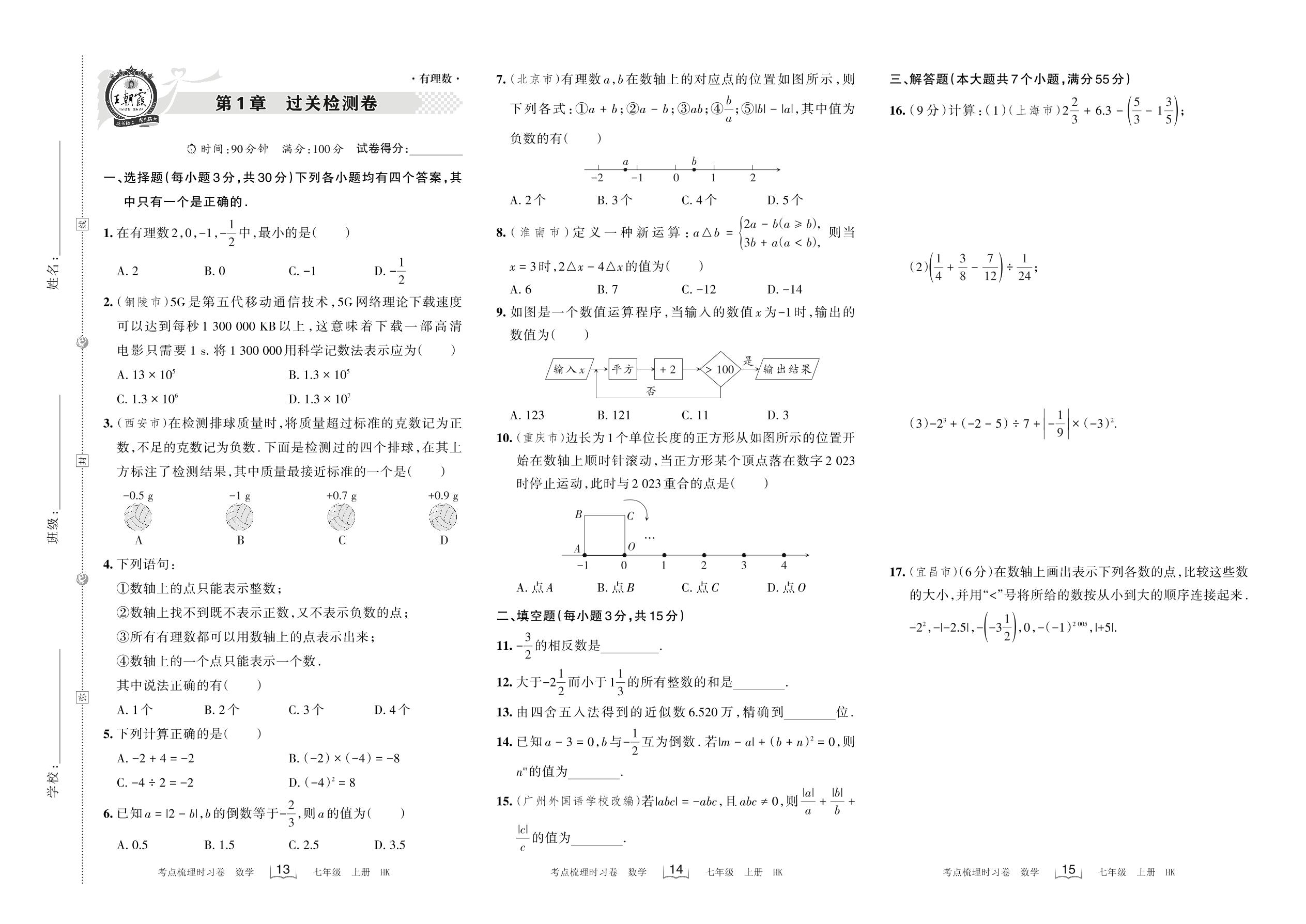 2022上册七年级数学沪科版 第1章 过关检测卷