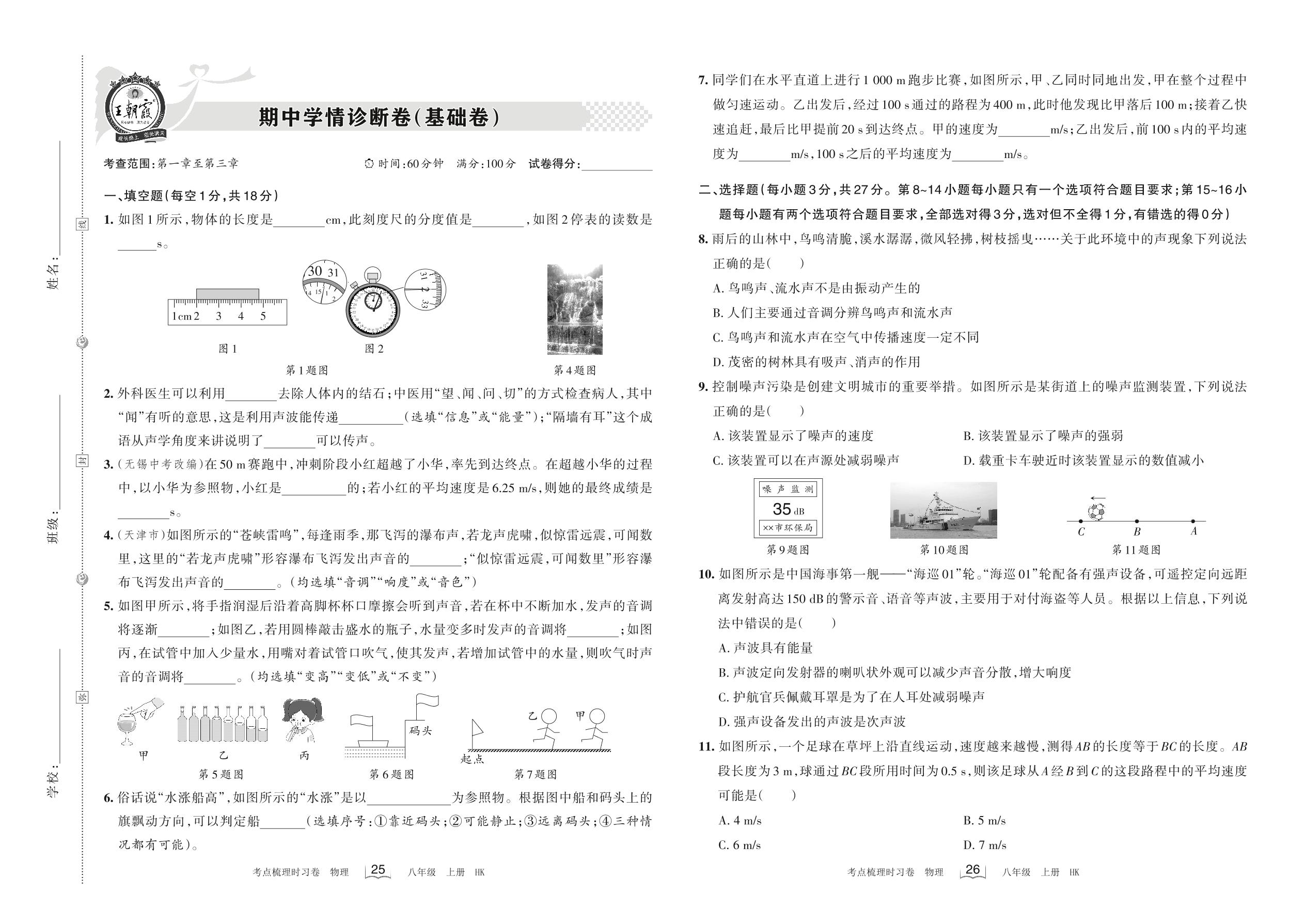 2022-2023学年第一学期八年级物理沪科版 期中学情诊断卷(基础卷)