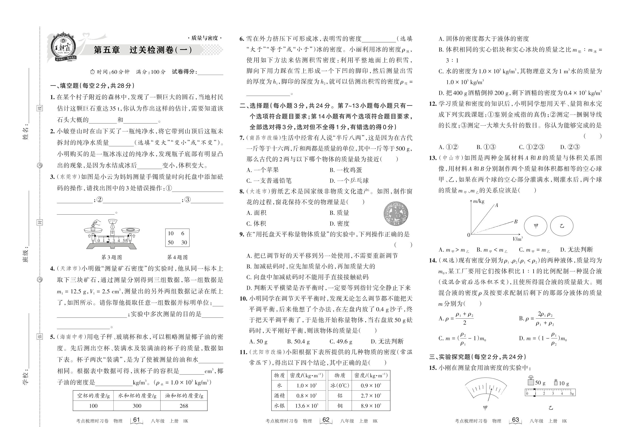 2022-2023学年八年级物理沪科版 第五章 过关检测卷(一)