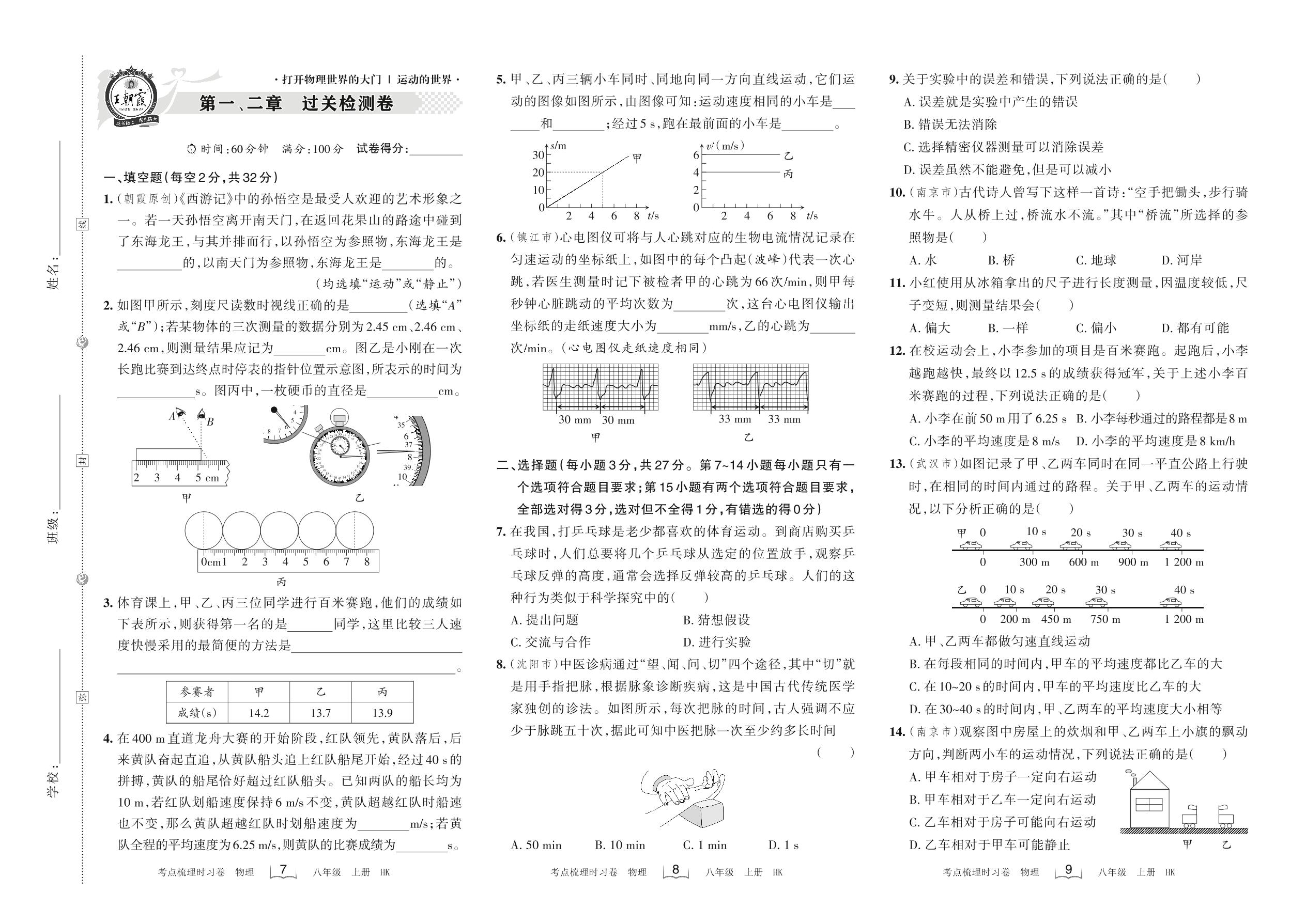 2022-2023学年八年级物理沪科版 第一、二章 过关检测卷