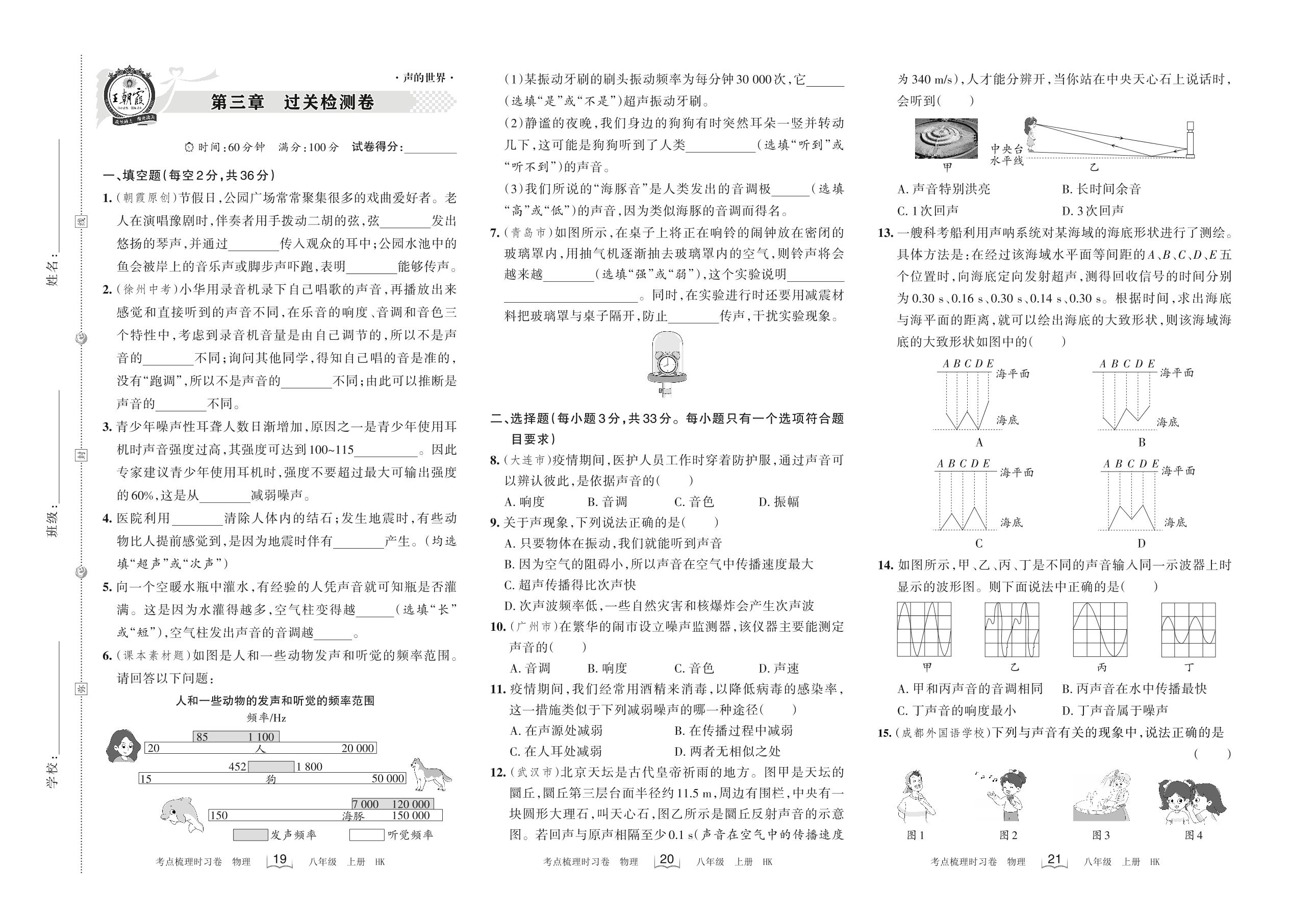 2022-2023学年八年级物理沪科版 第三章 过关检测卷
