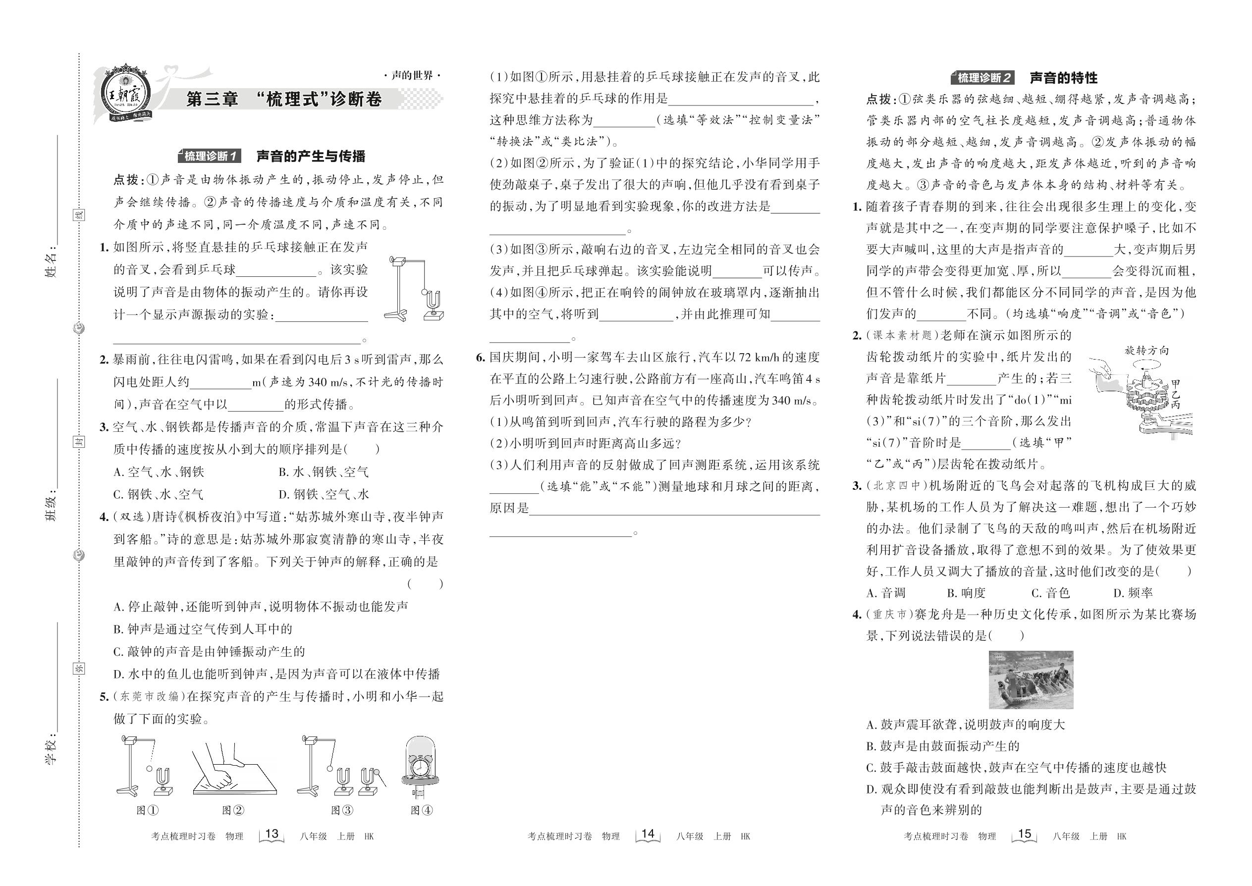 2022-2023学年八年级物理沪科版 第三章 “梳理式”诊断卷