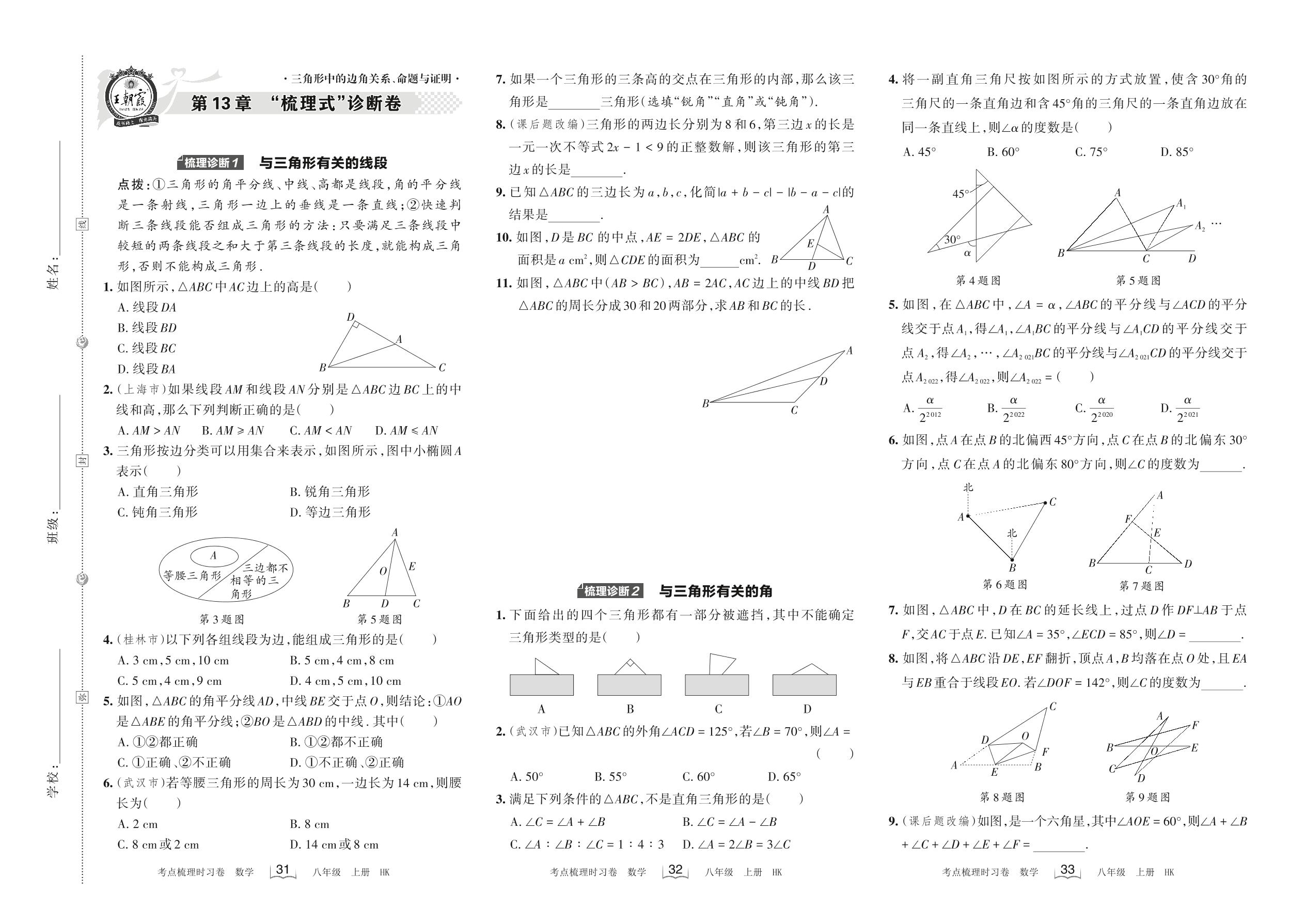 2022上册八年级数学沪科版 第13章 “梳理式”诊断卷