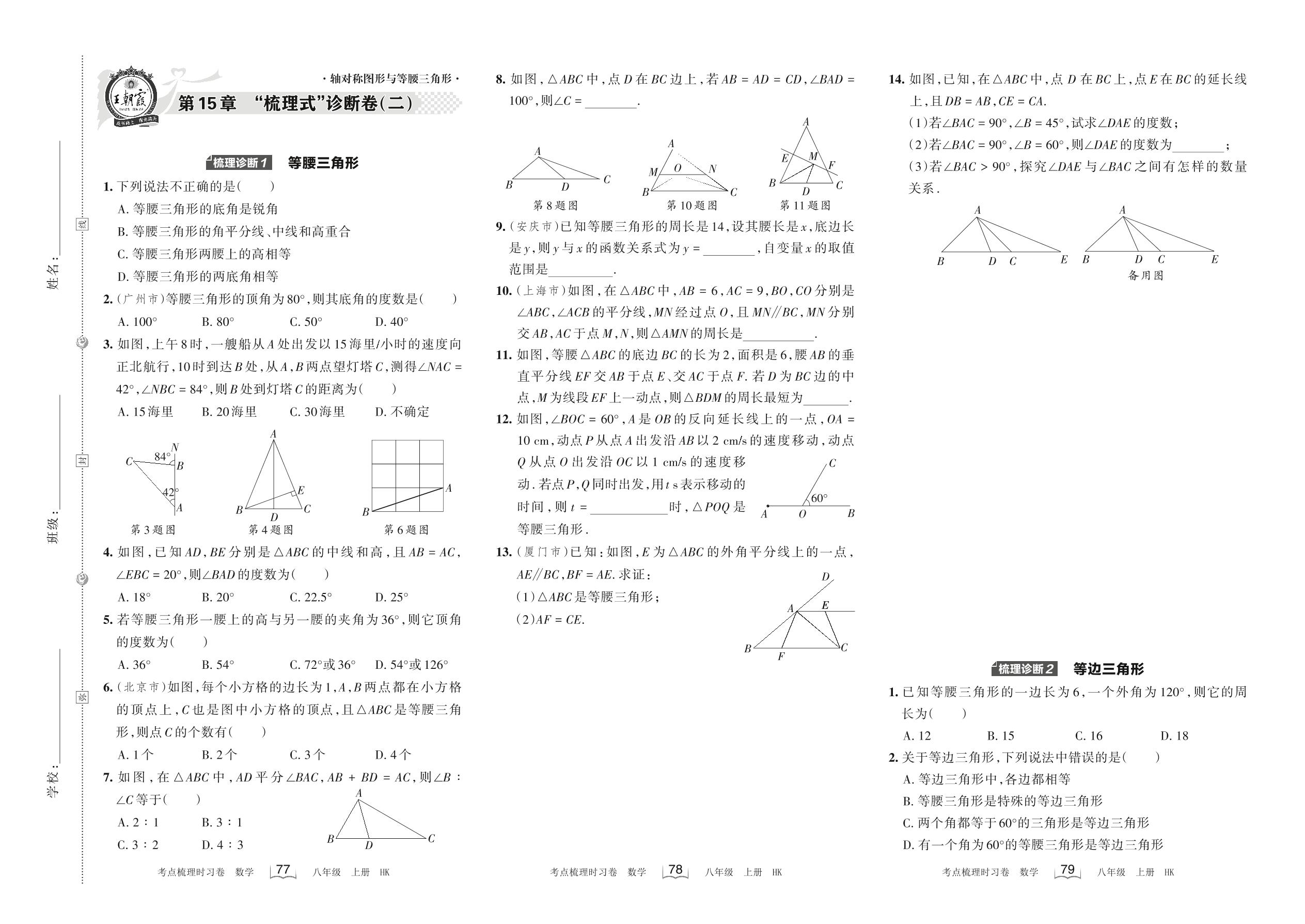 2022上册八年级数学沪科版 第15章 “梳理式”诊断卷(二)
