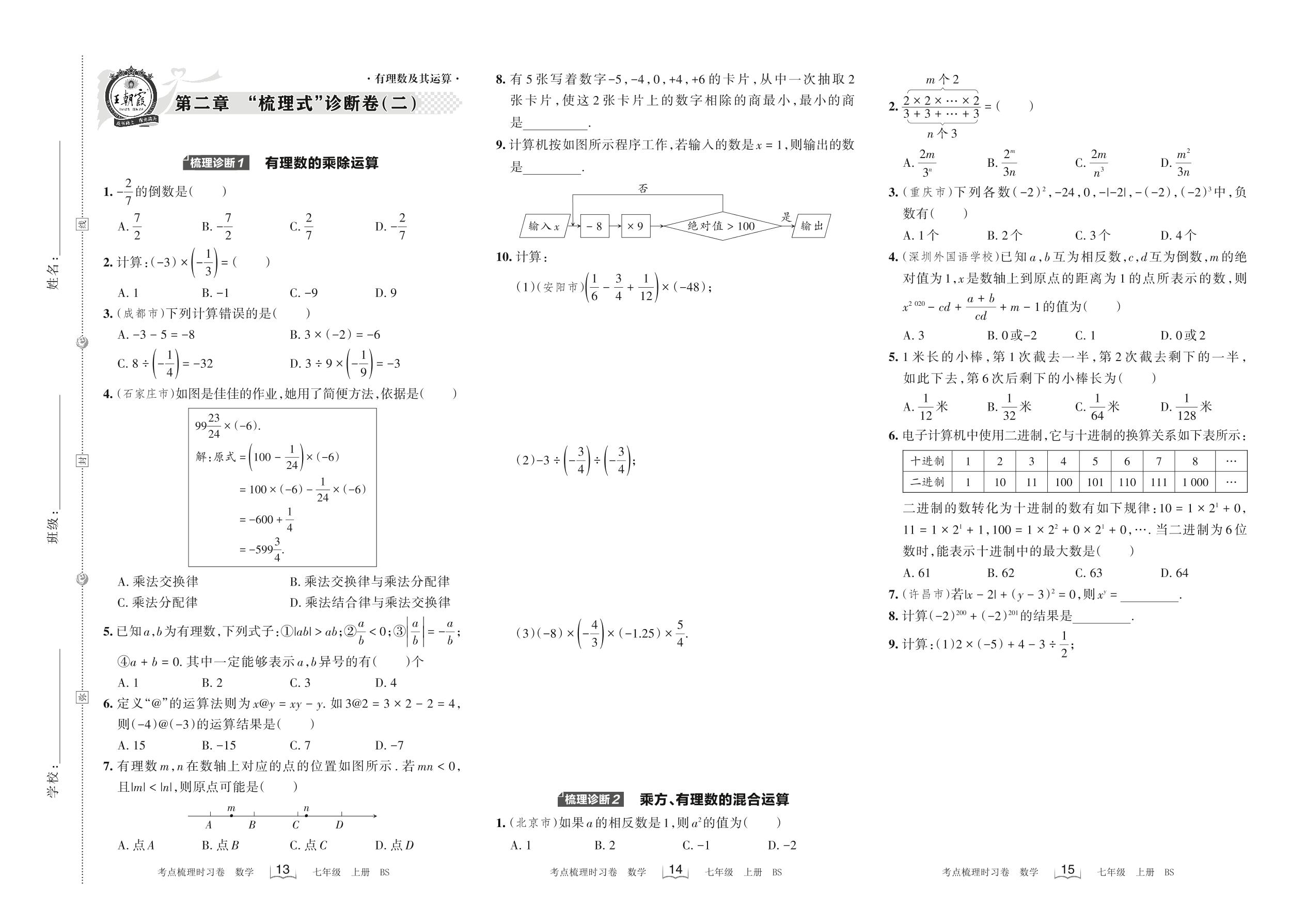 2022上册七年级数学北师版 第二章 “梳理式”诊断卷(二)