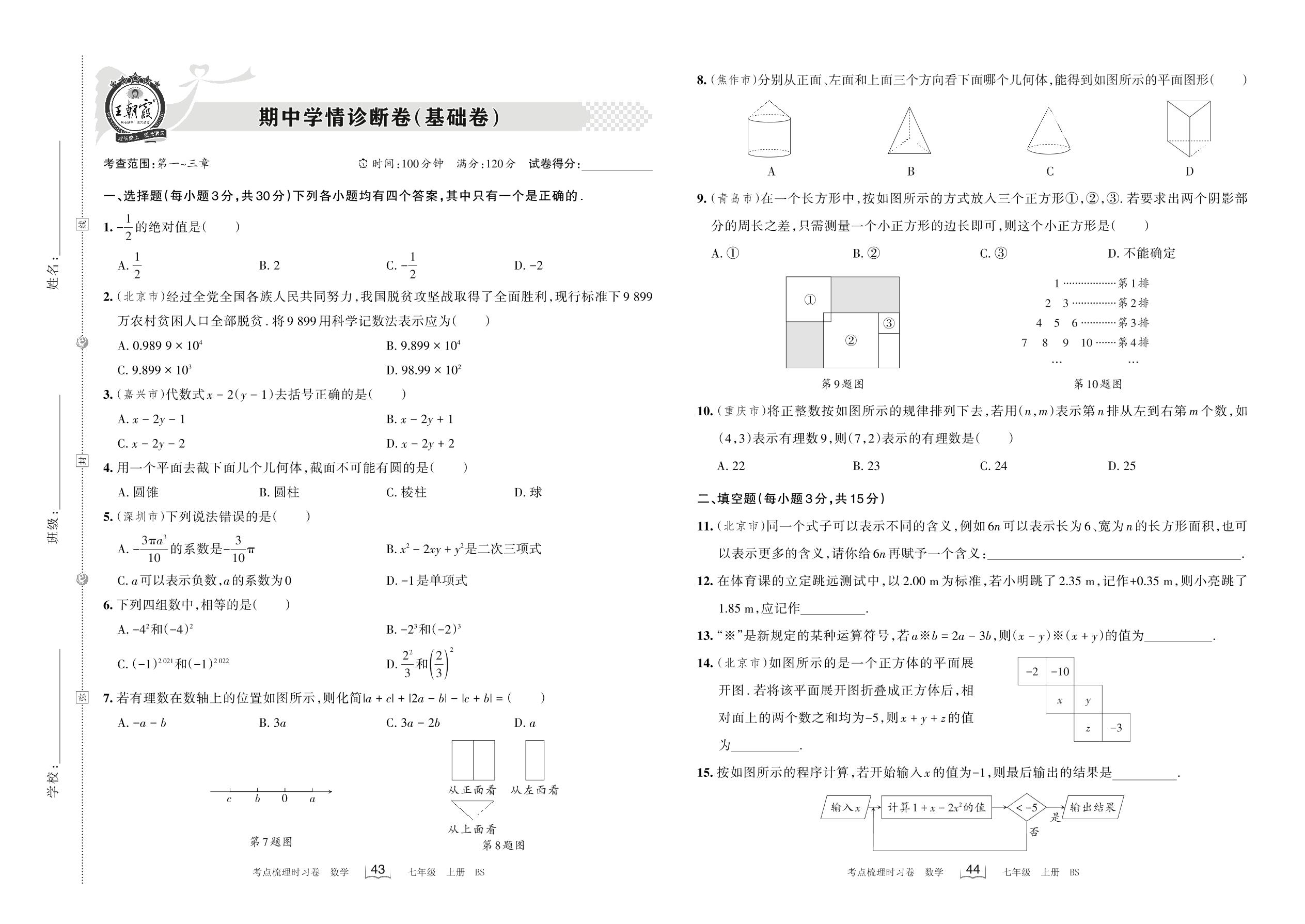 2022上册七年级数学北师版 期中学情诊断卷(基础卷)
