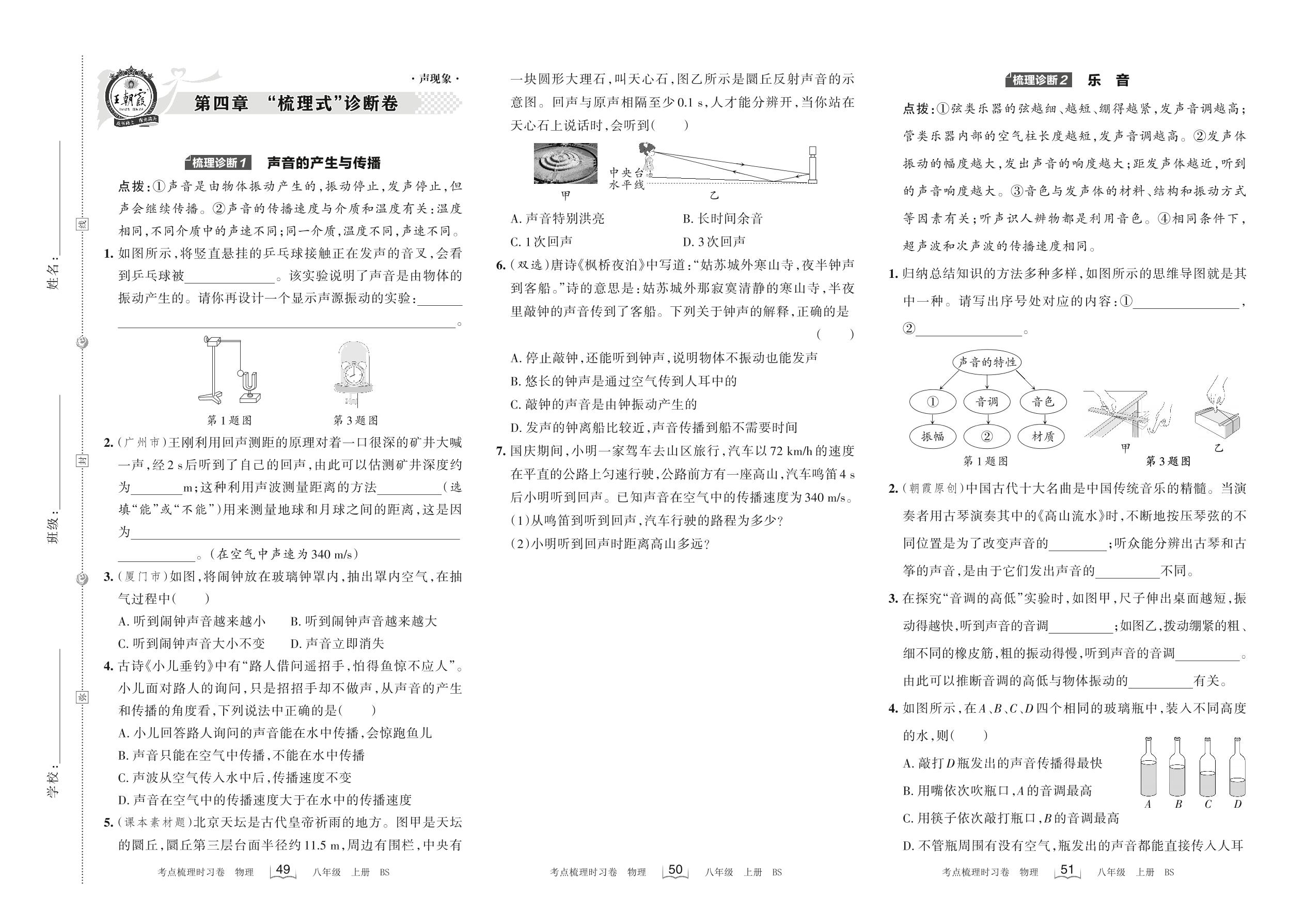 2022上册八年级物理北师版 第四章 “梳理式”诊断卷