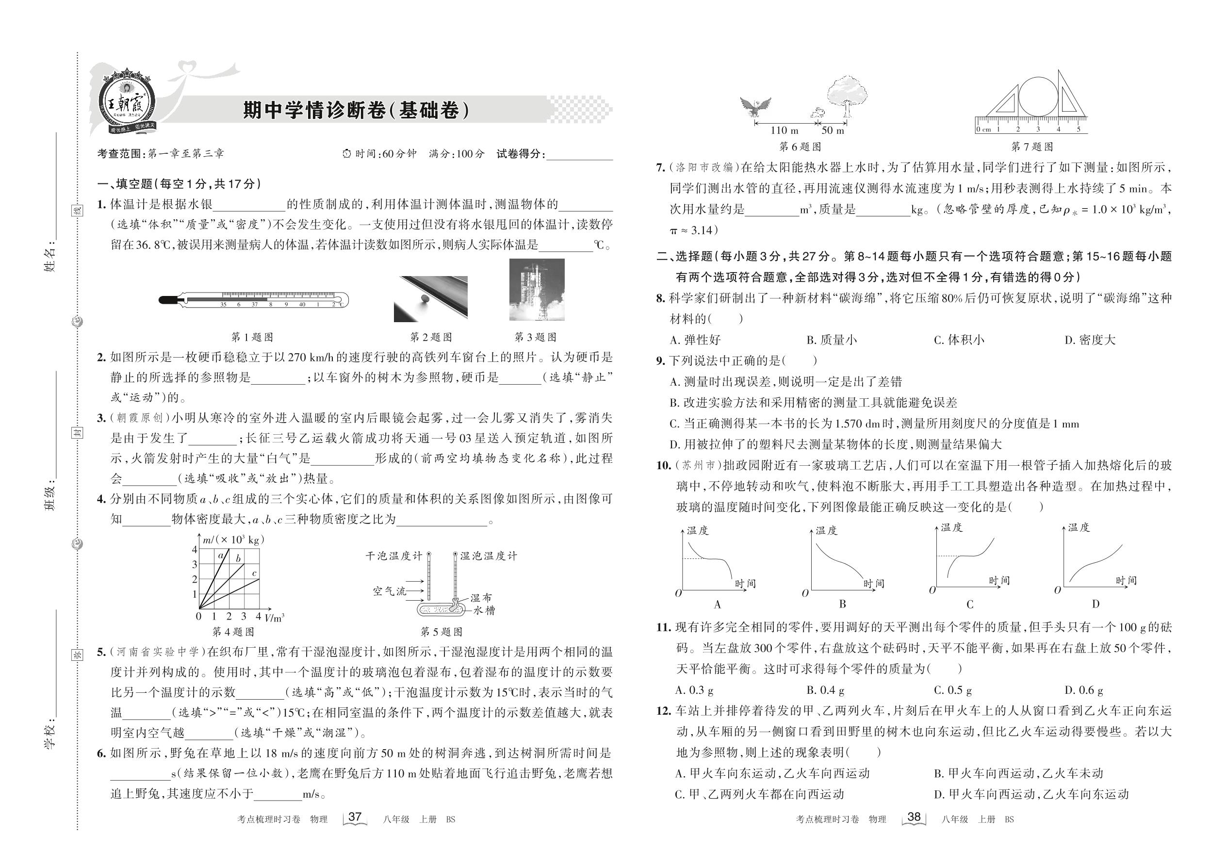 八年级物理北师版上册期中卷