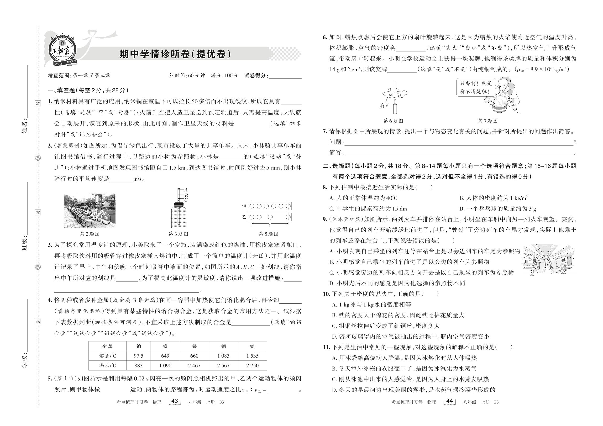 2022上册八年级物理北师版 期中学情诊断卷(提优卷)