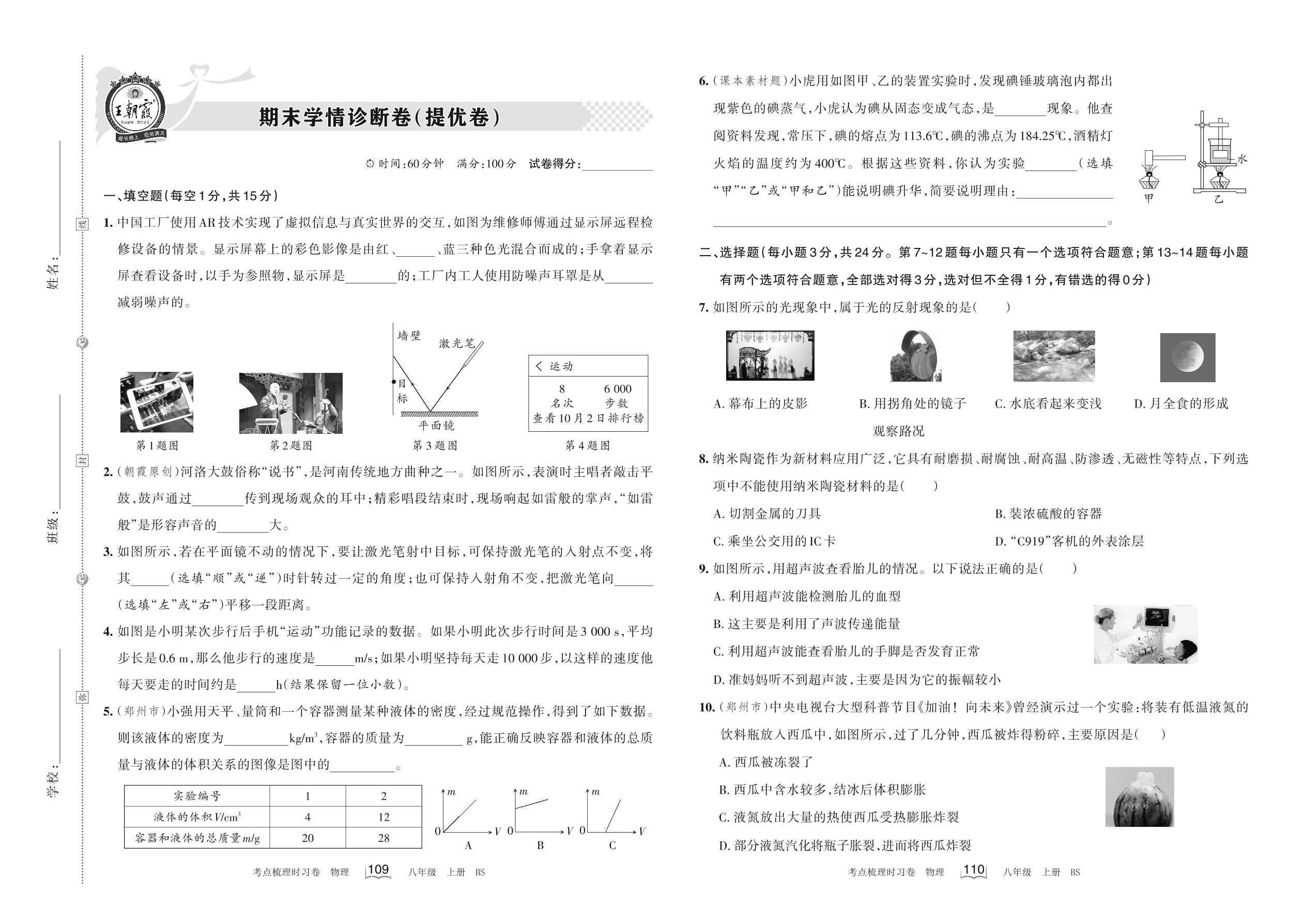 2022上册八年级物理北师版 期末学情诊断卷(提优卷)
