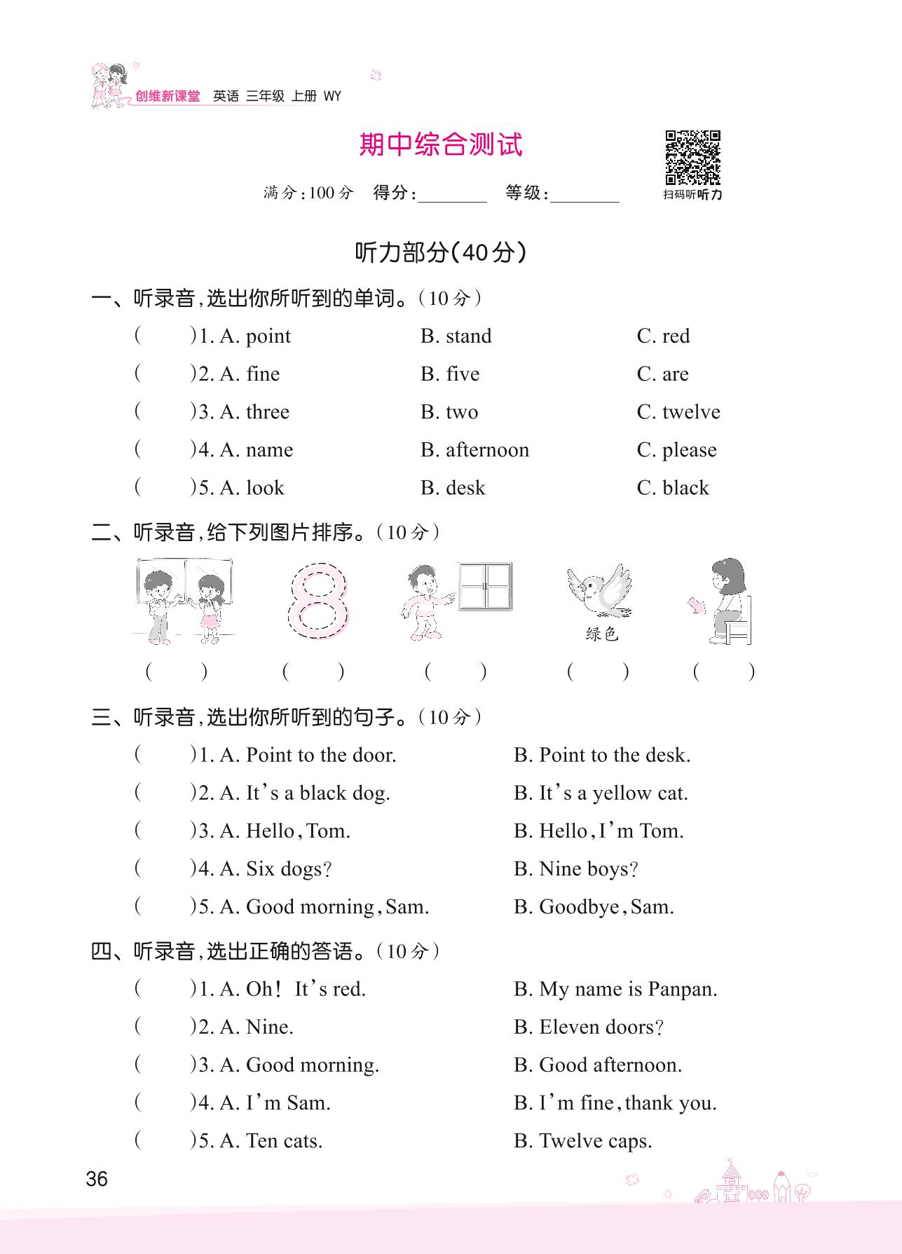 三年级英语外研版(三起始)上册期中卷