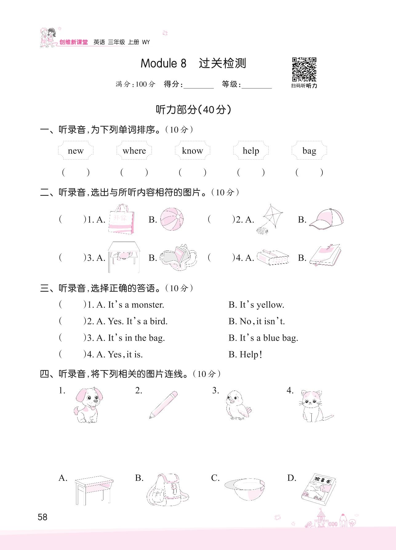 2022上册三年级英语外研版 Module 8 过关检测