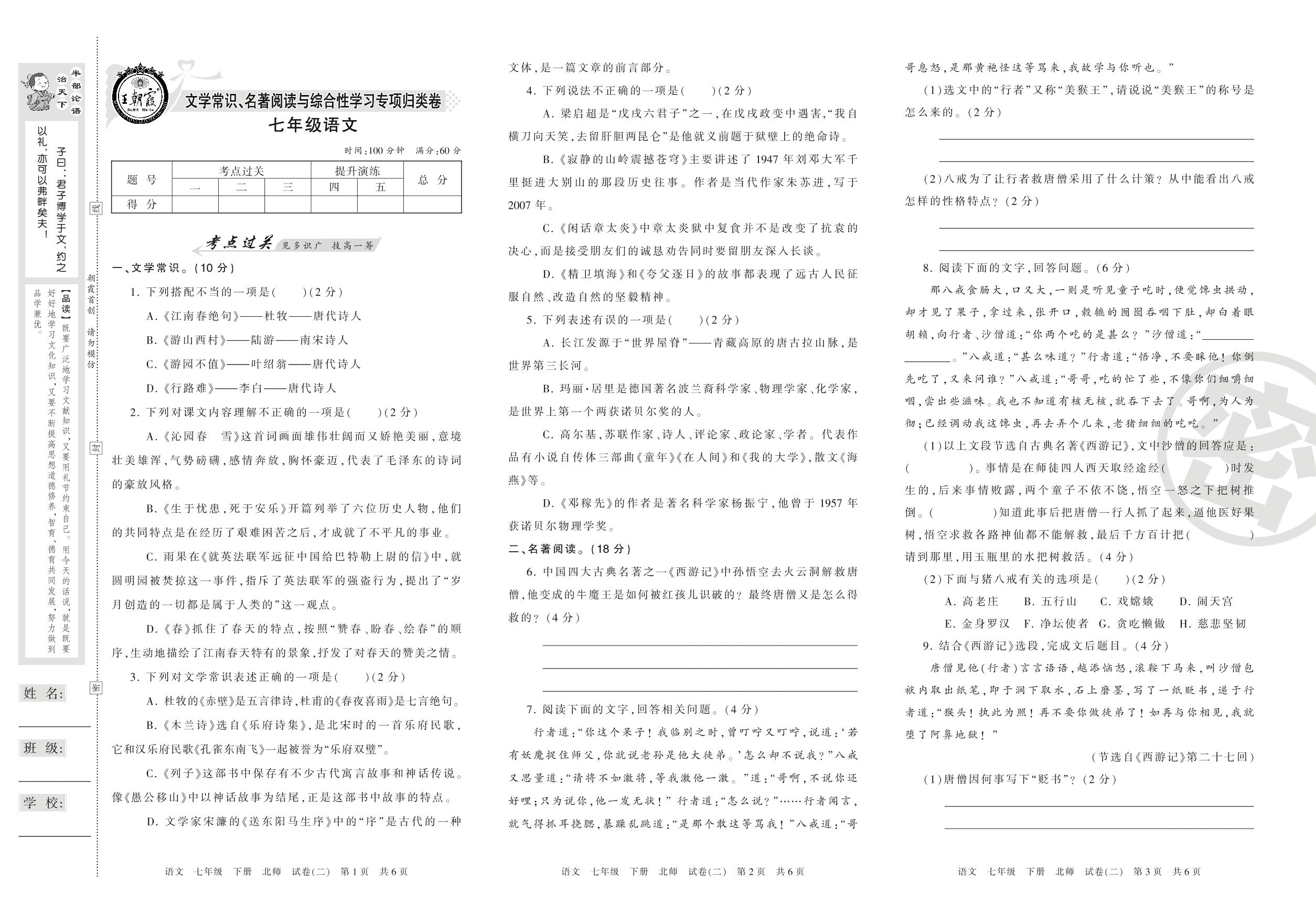 王朝霞期末专项卷七年级下册语文(北师版)【2】