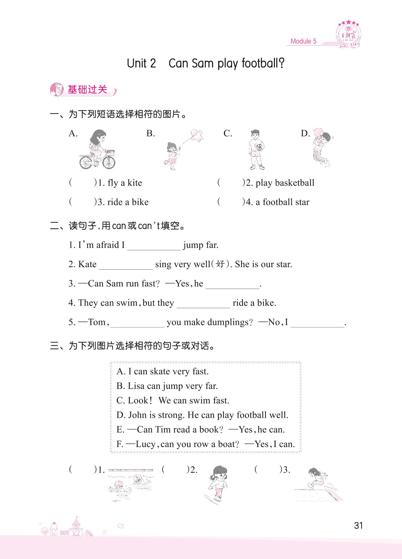 2022上册四年级英语外研版 Module 5—Unit 2 Can Sam play football?