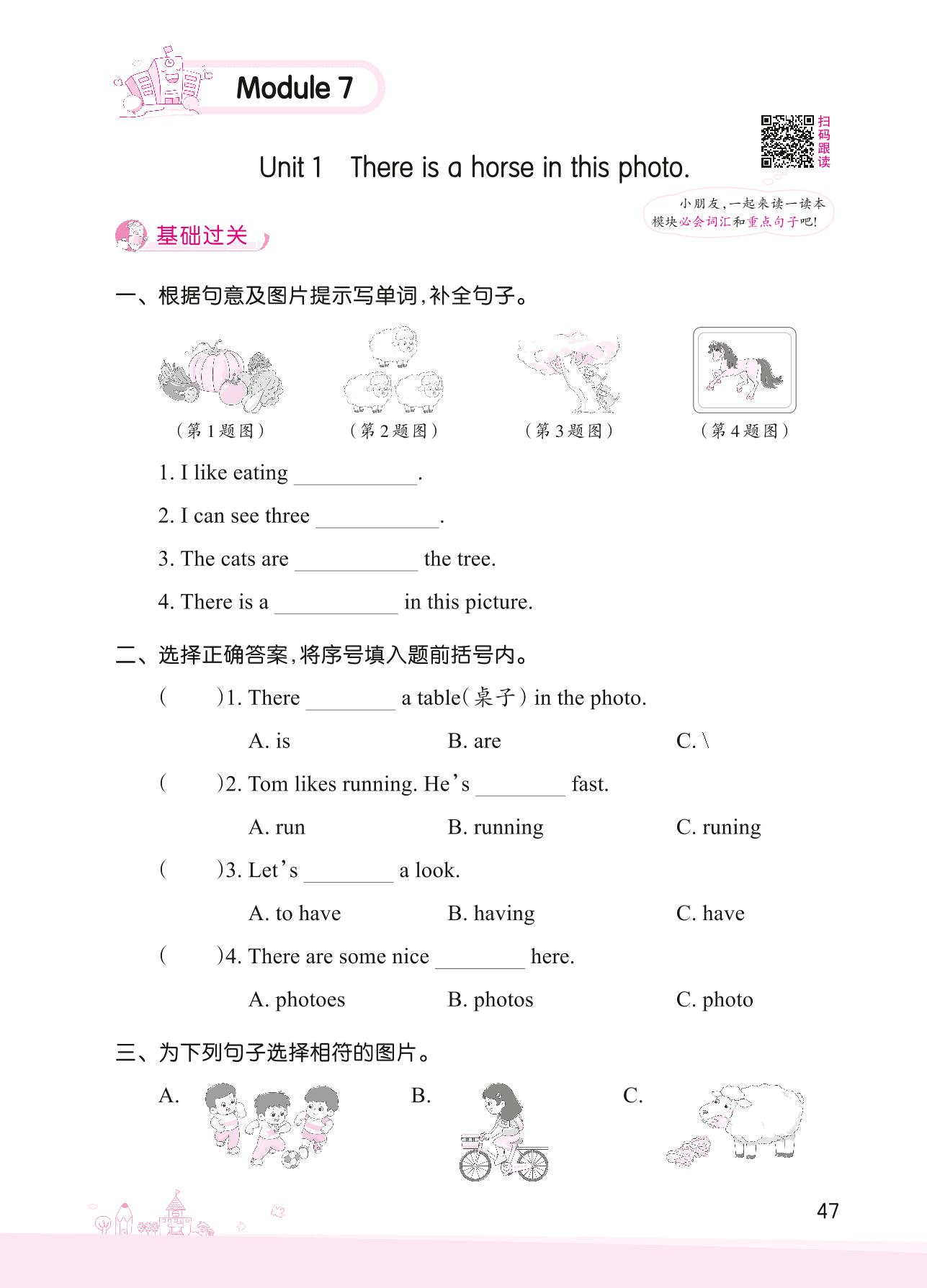2022上册四年级英语外研版 Module 7—Unit 1 There is a horse in this photo.