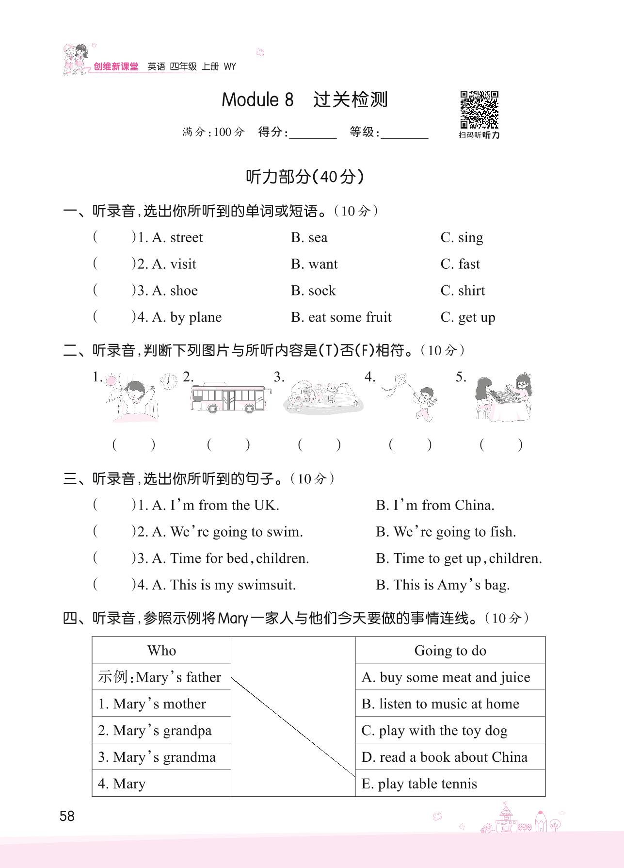 2022上册四年级英语外研版 Module 8 过关检测