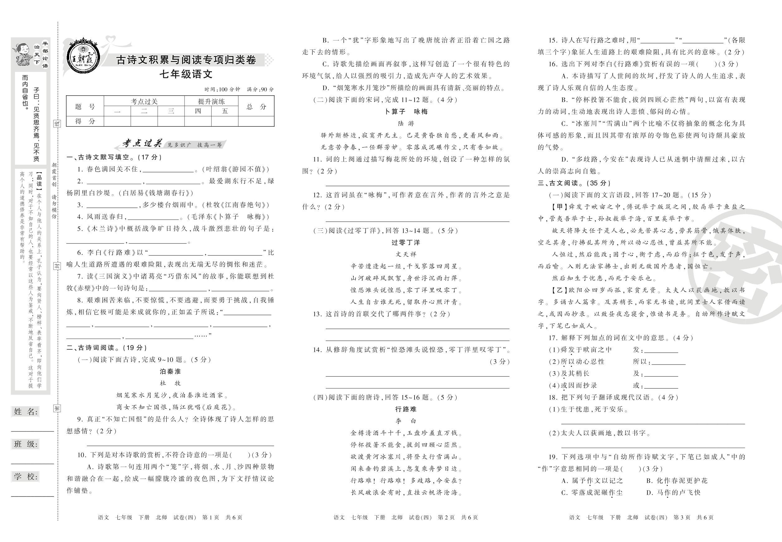 王朝霞期末专项卷七年级下册语文(北师版)【4】