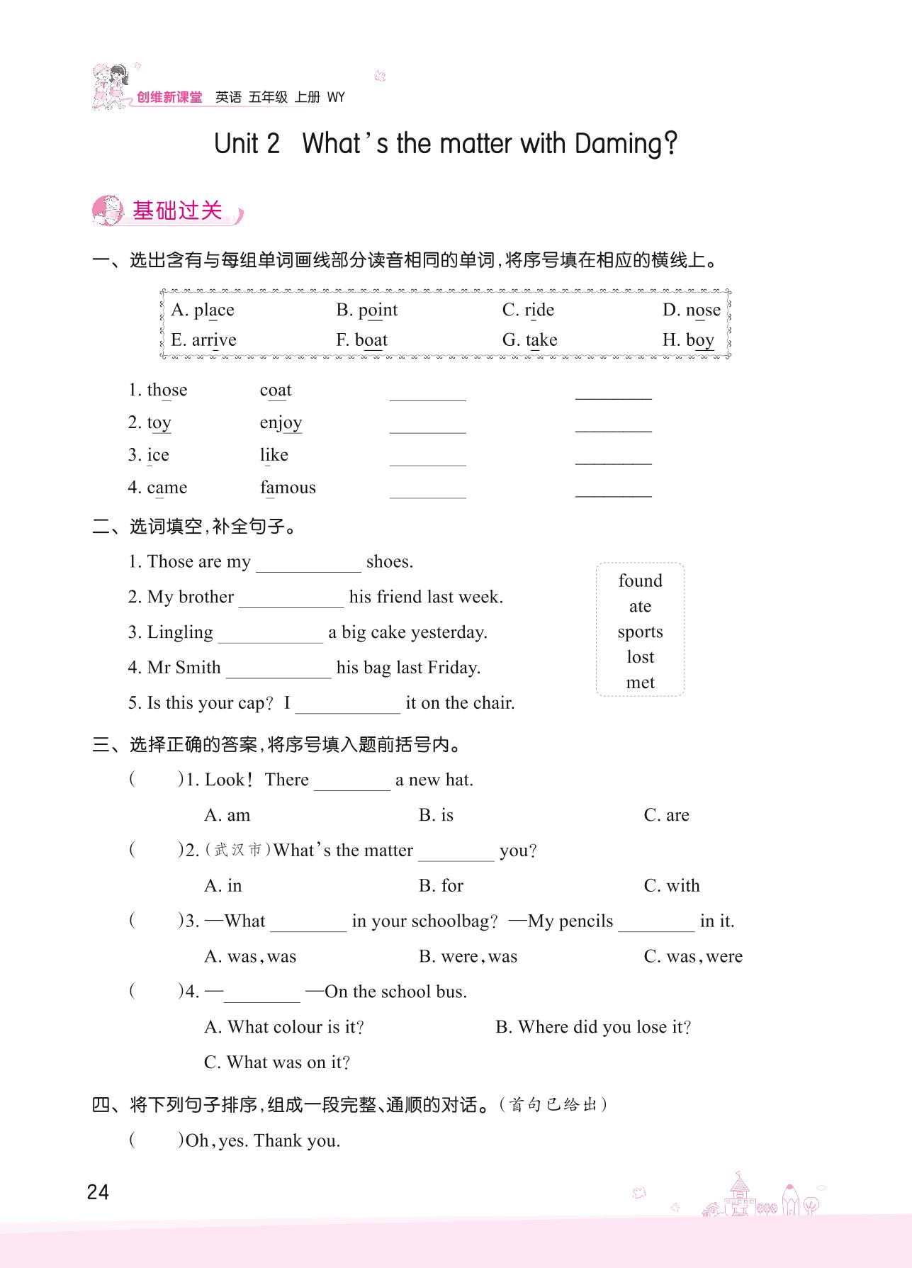 2022上册五年级英语外研版 Module 4—Unit 2 What’s the matter with Daming?