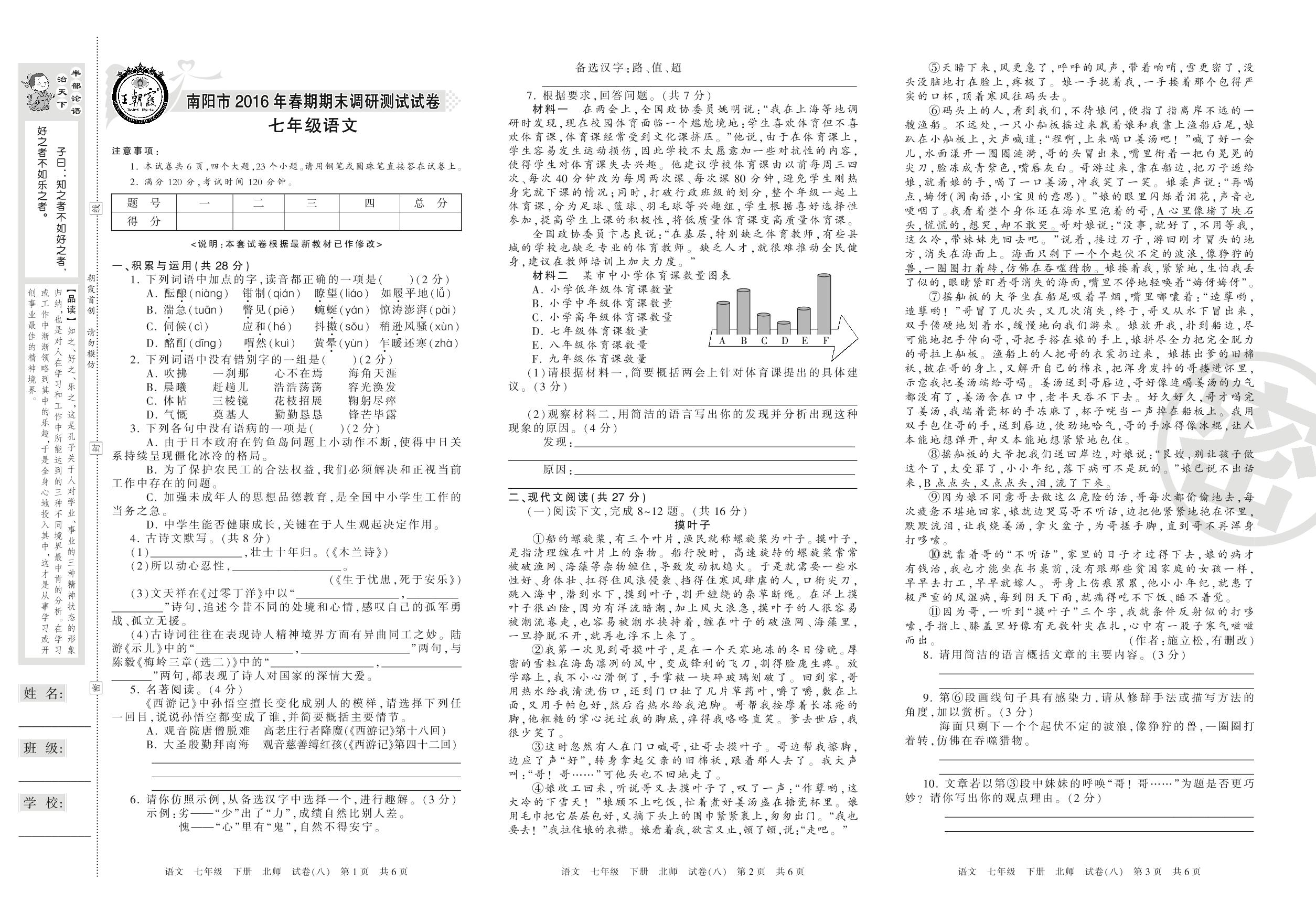 2015-2016学年第二学期南阳市七年级语文试卷(北师版)【8】