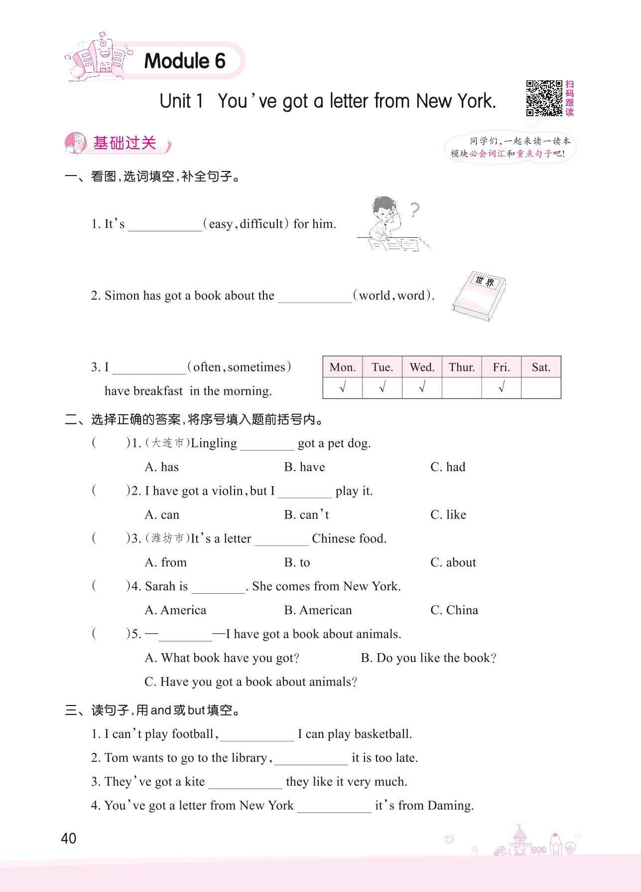 2022上册六年级英语外研版 Module 6—Unit 1 You’ve got a letter from New York.