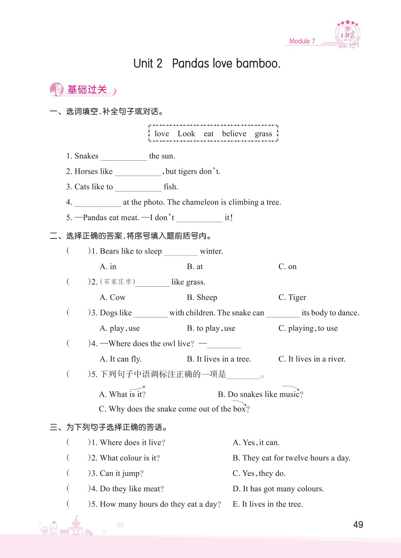 2022上册六年级英语外研版 Module 7—Unit 2 Pandas love bamboo.