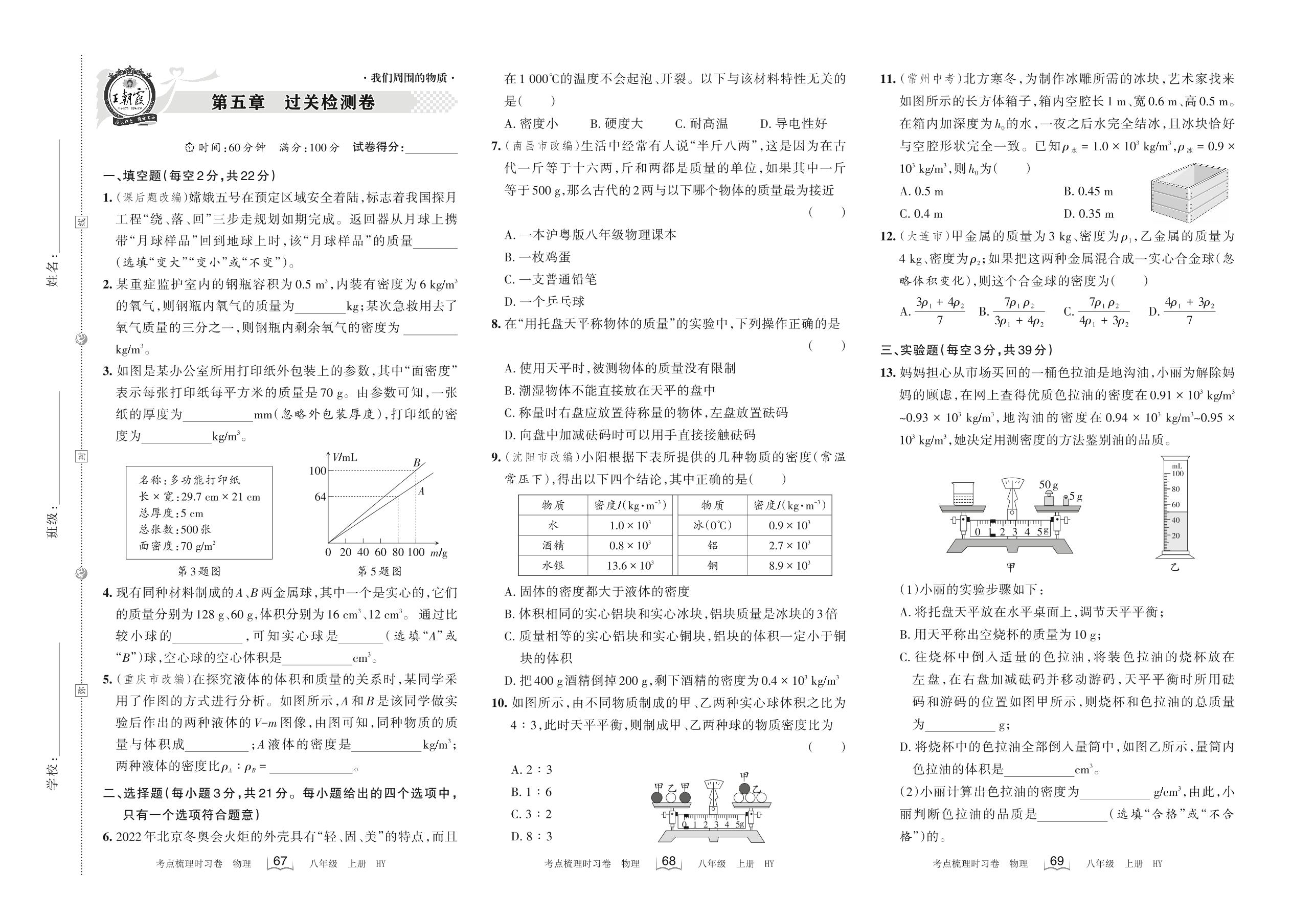 2022上册八年级物理沪粤版 第五章 过关检测卷