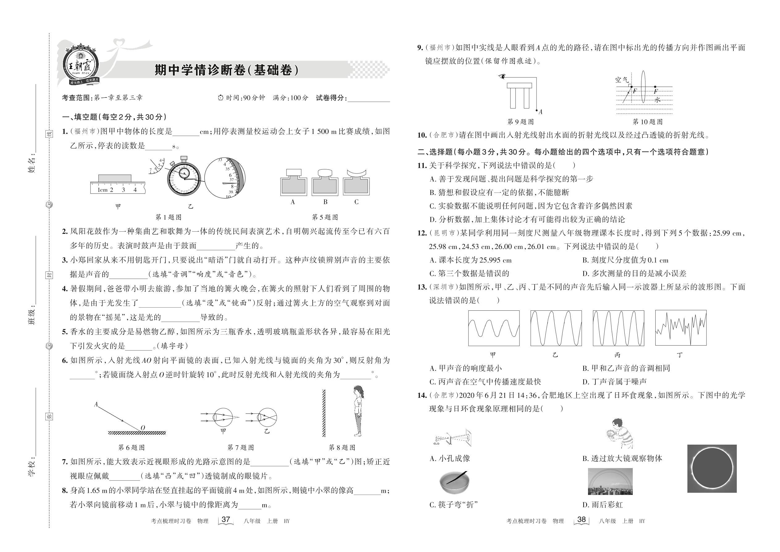 八年级物理沪粤版上册期中卷