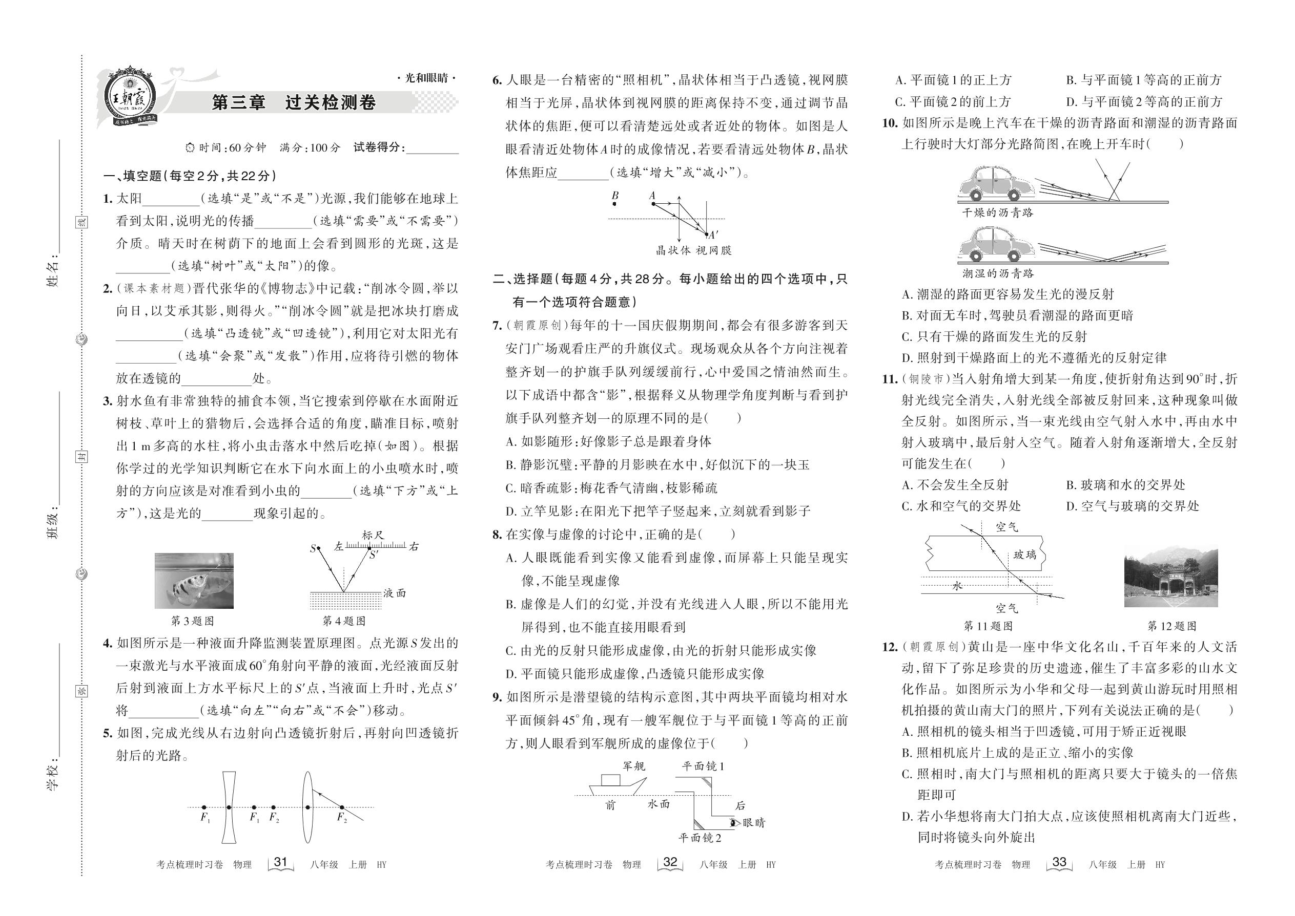 2022上册八年级物理沪粤版 第三章 过关检测卷