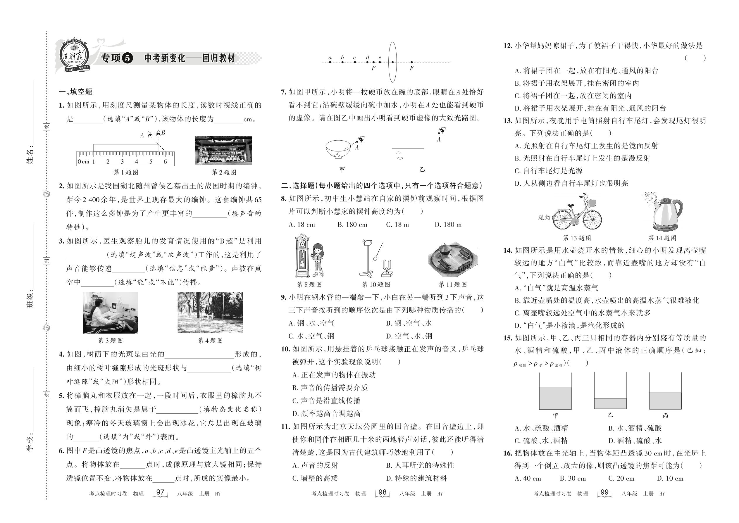 2022上册八年级物理沪粤版 专项5 中考新变化——回归教材