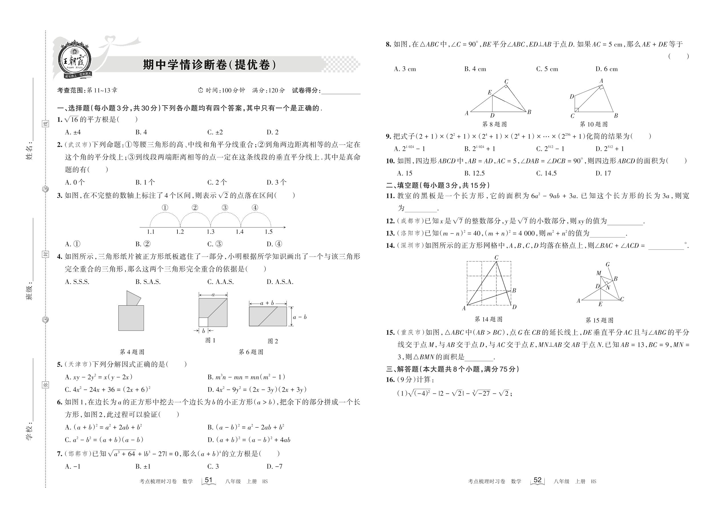 2022上册八年级数学华师版 期中学情诊断卷(提优卷)