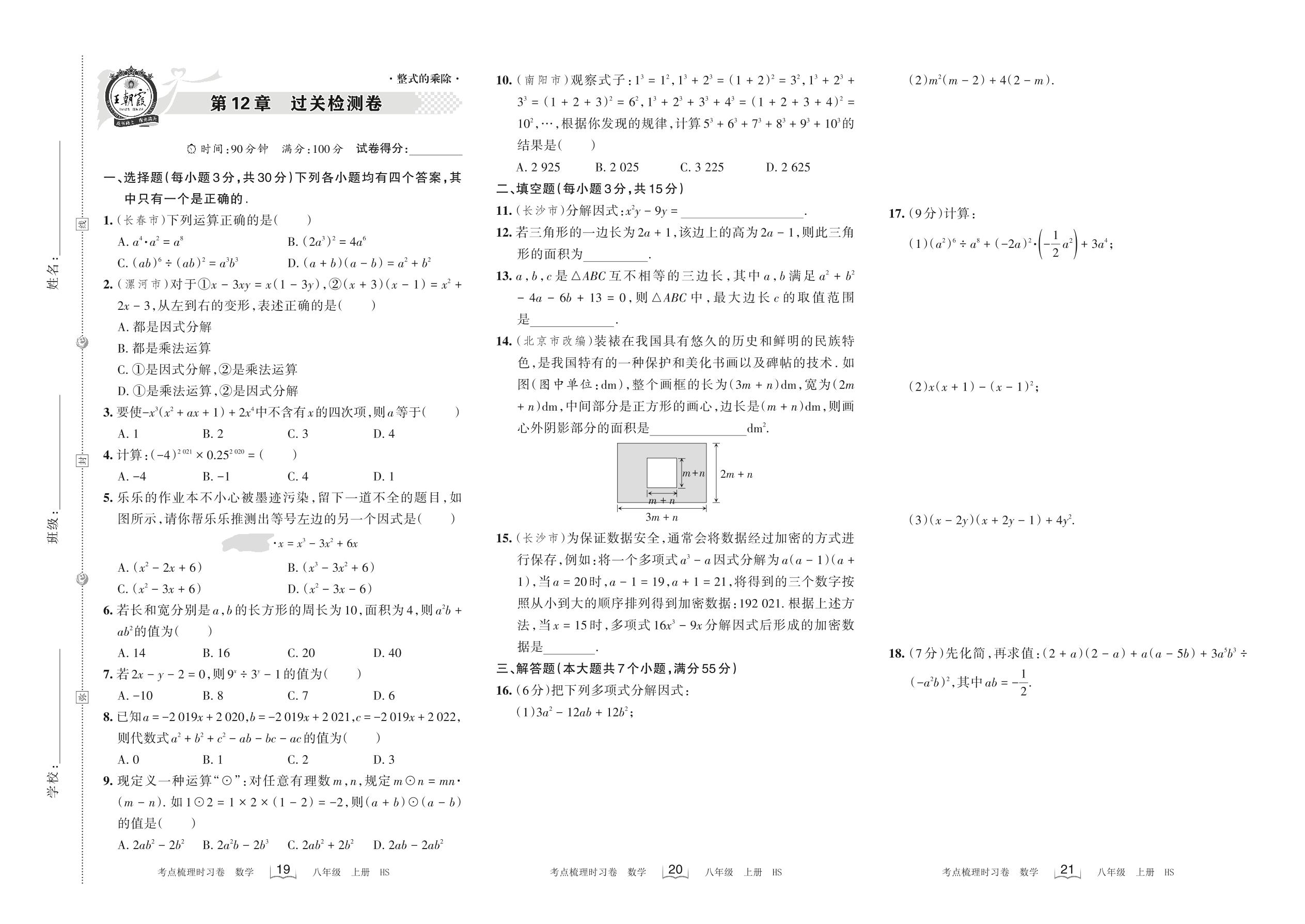 2022上册八年级数学华师版 第12章 过关检测卷
