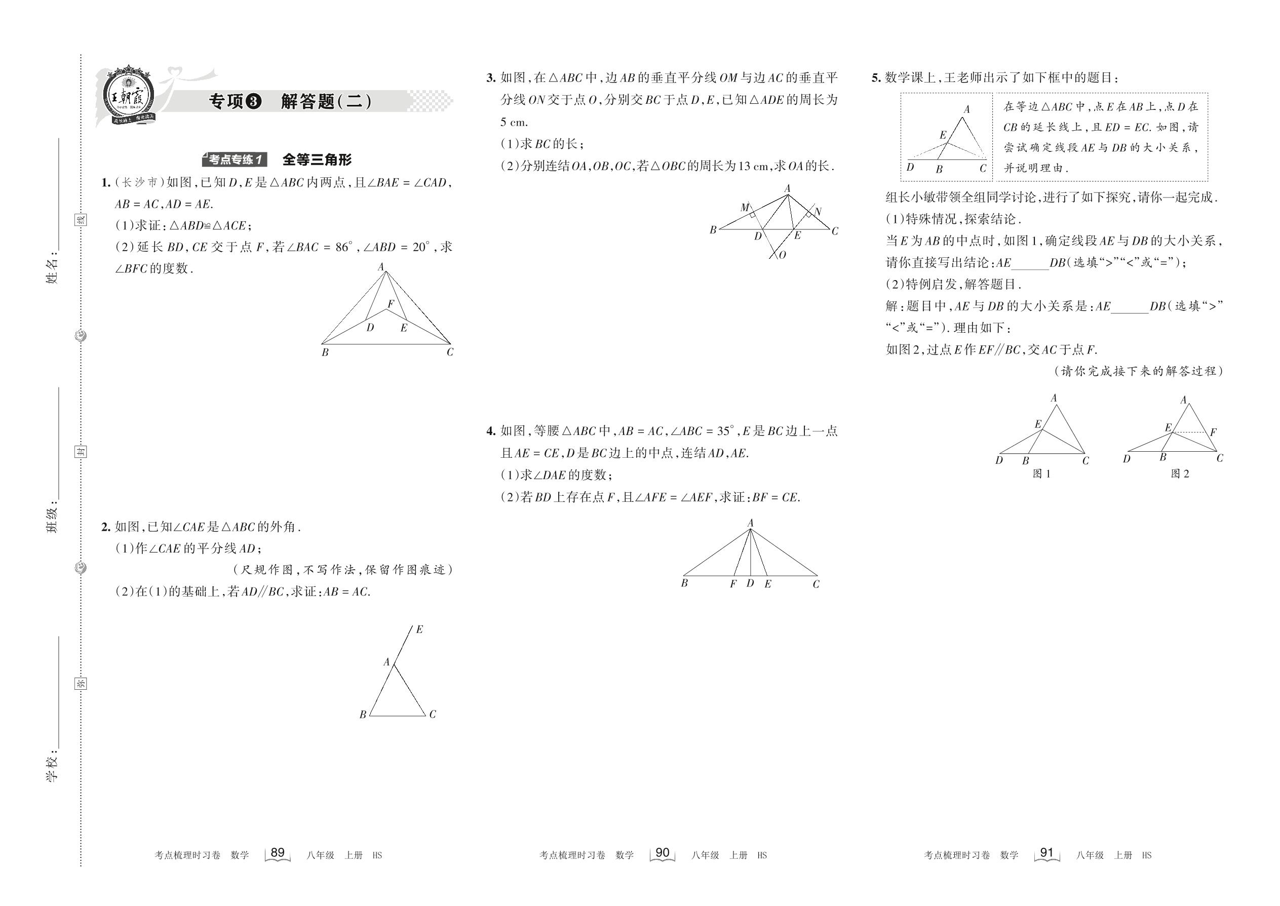 【易考专项】华师版·数学·八年级解答题(二)专项训练