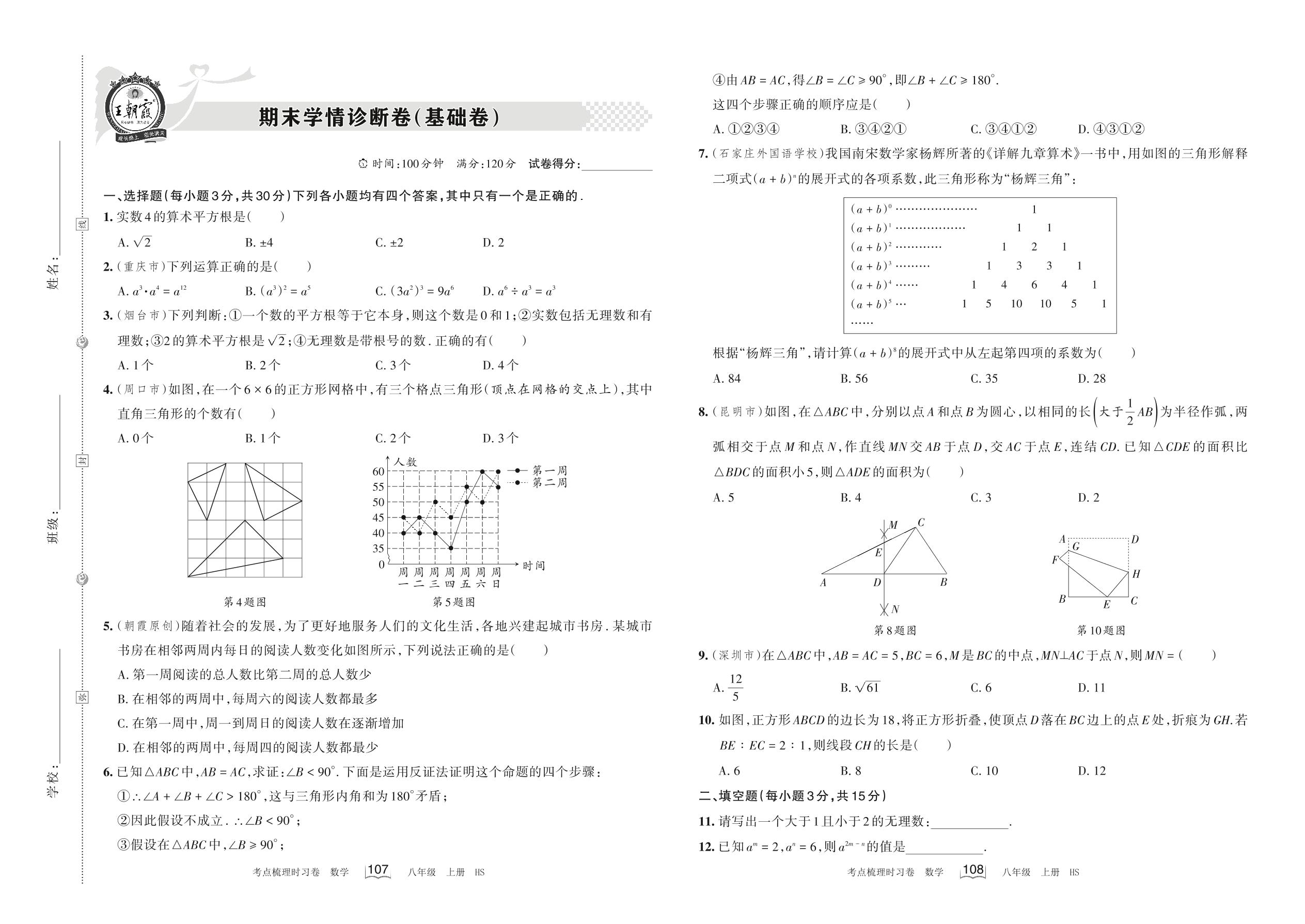 2022上册八年级数学华师版 期末学情诊断卷(基础卷)