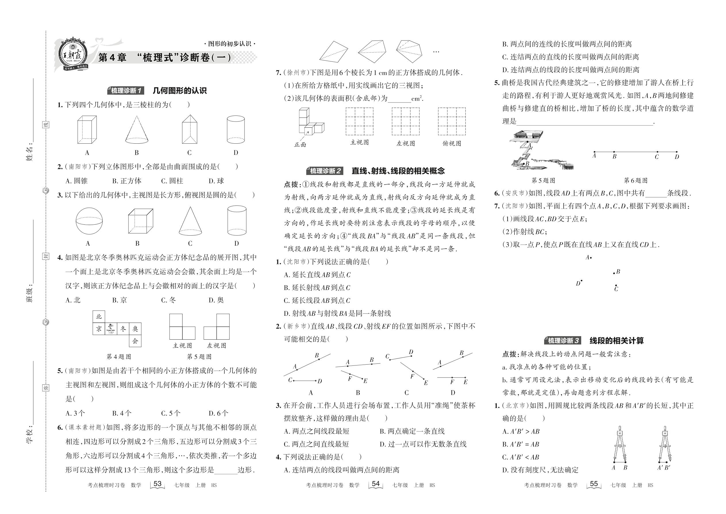 2022上册七年级数学华师版 第4章 “梳理式”诊断卷(一)