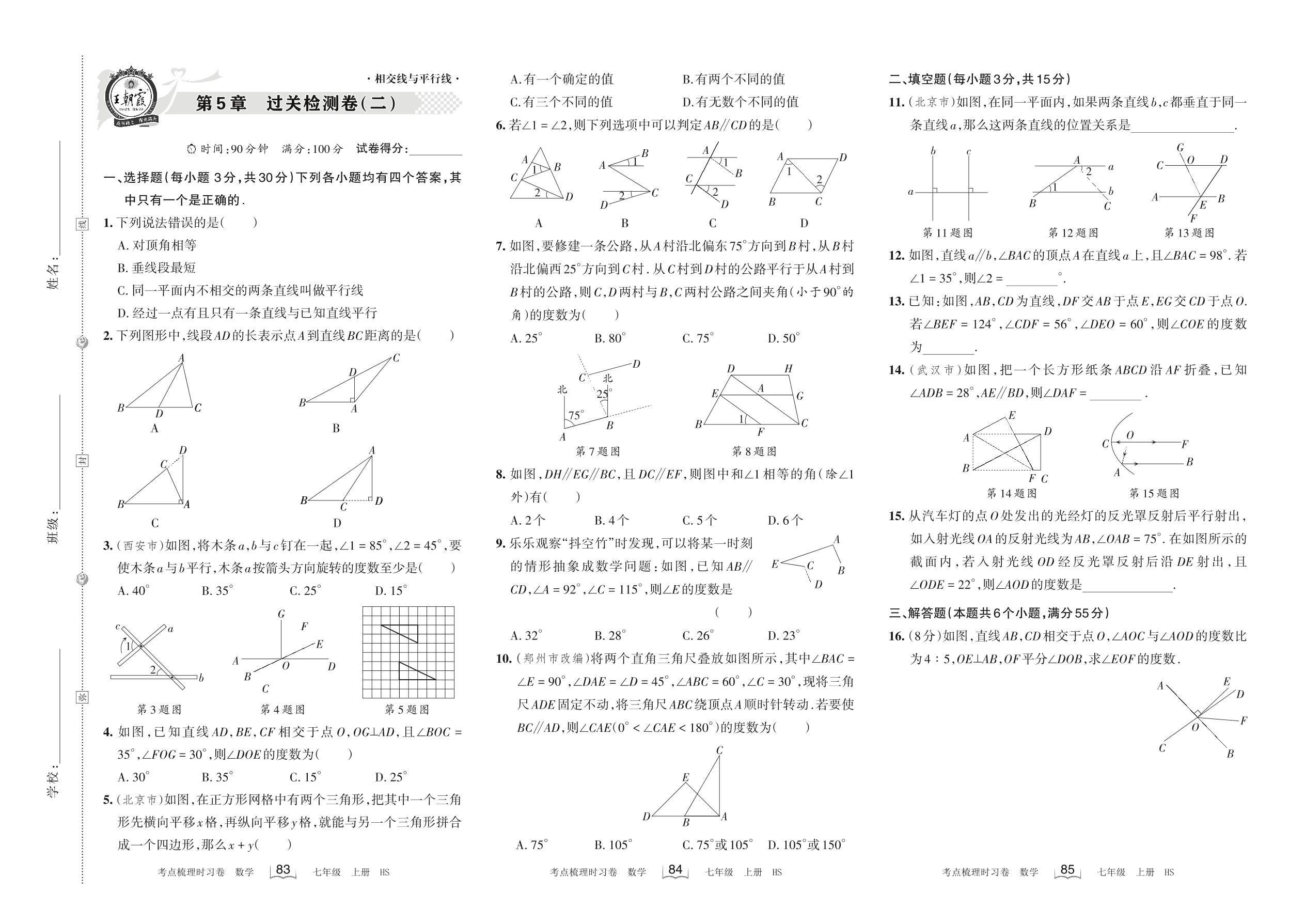 2022上册七年级数学华师版 第5章 过关检测卷(二)