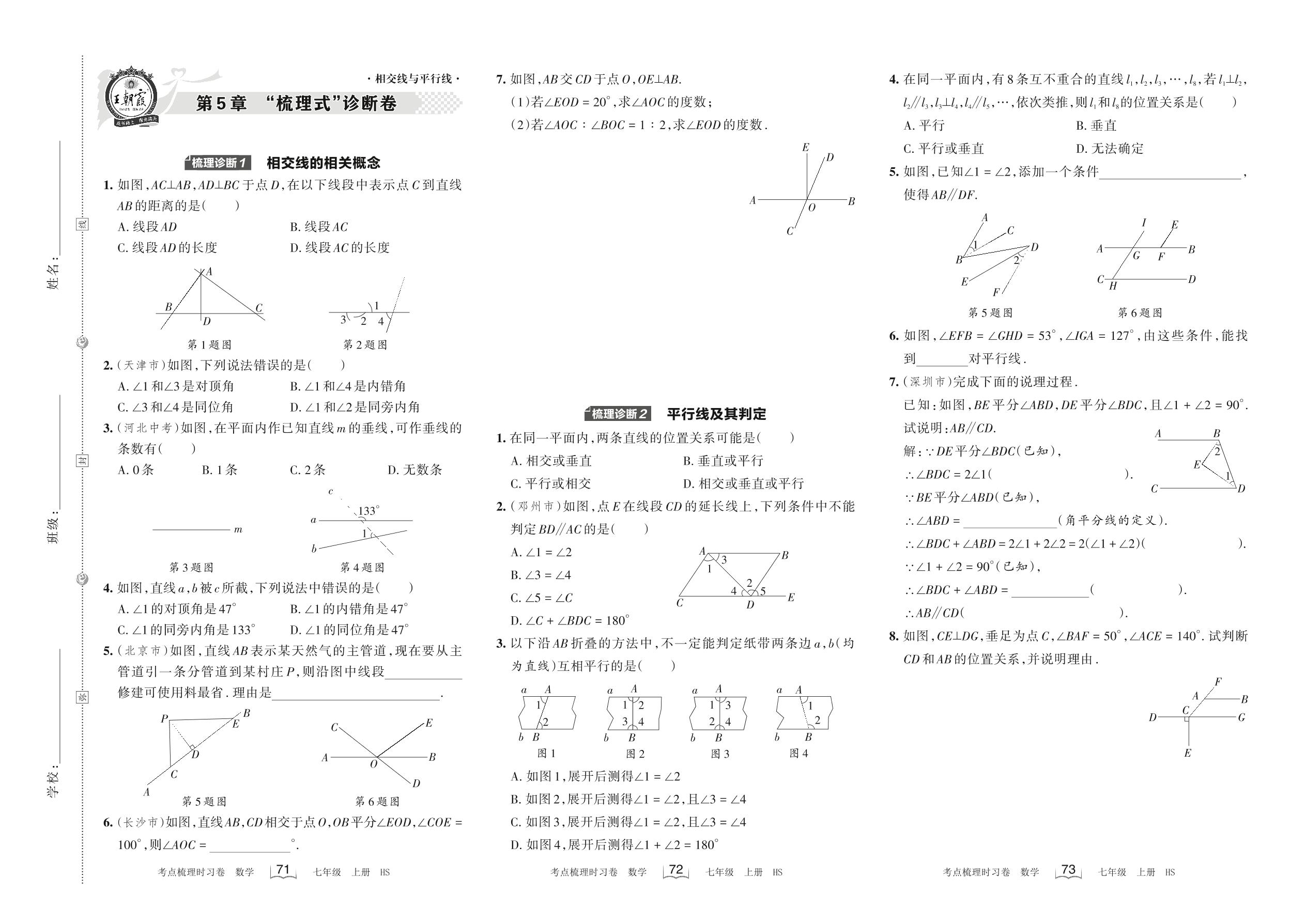 2022上册七年级数学华师版 第5章 “梳理式”诊断卷