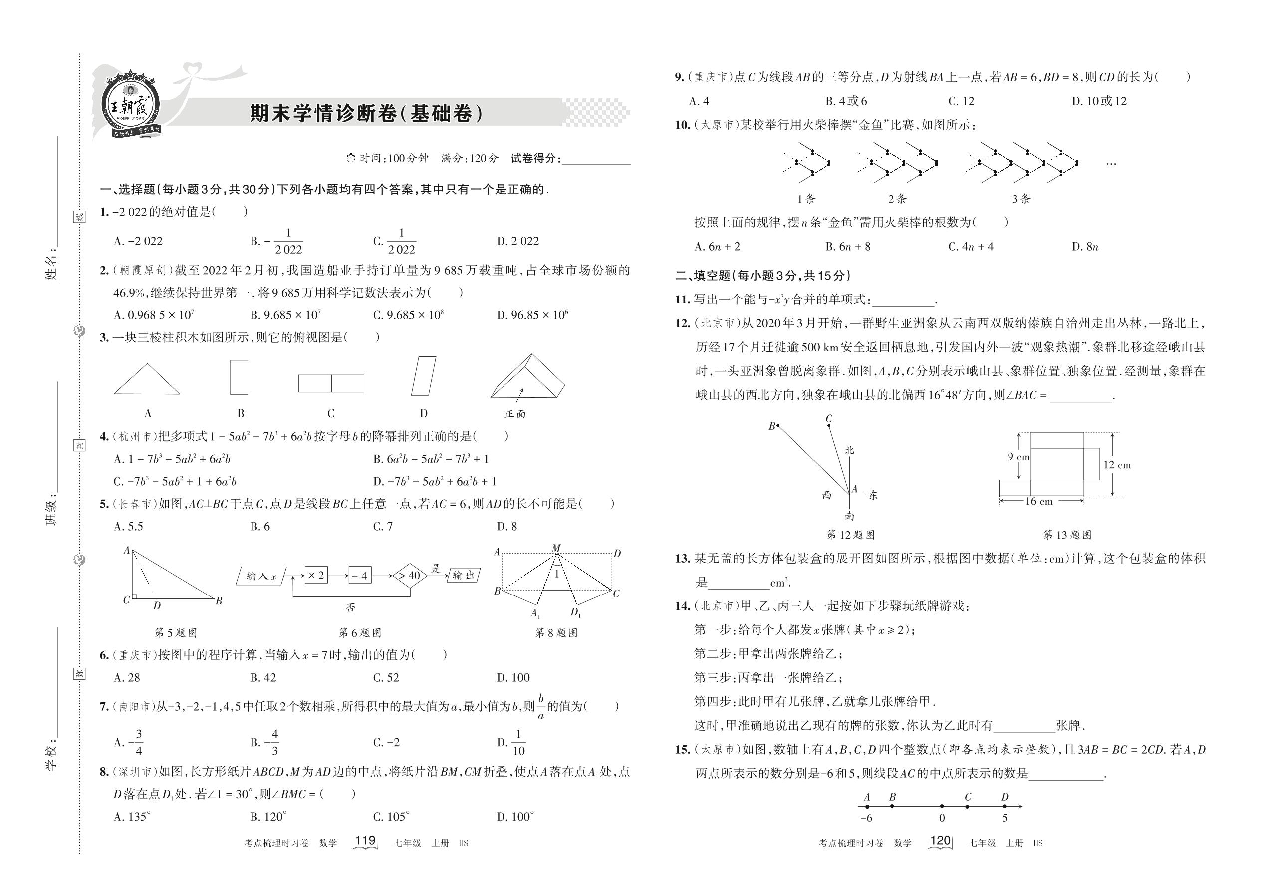 2022上册七年级数学华师版 期末学情诊断卷(基础卷)