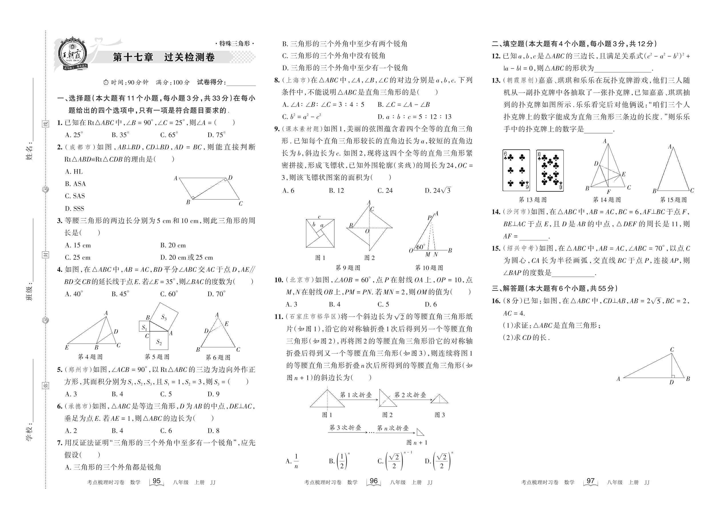 2022上册八年级数学冀教版 第十七章 过关检测卷