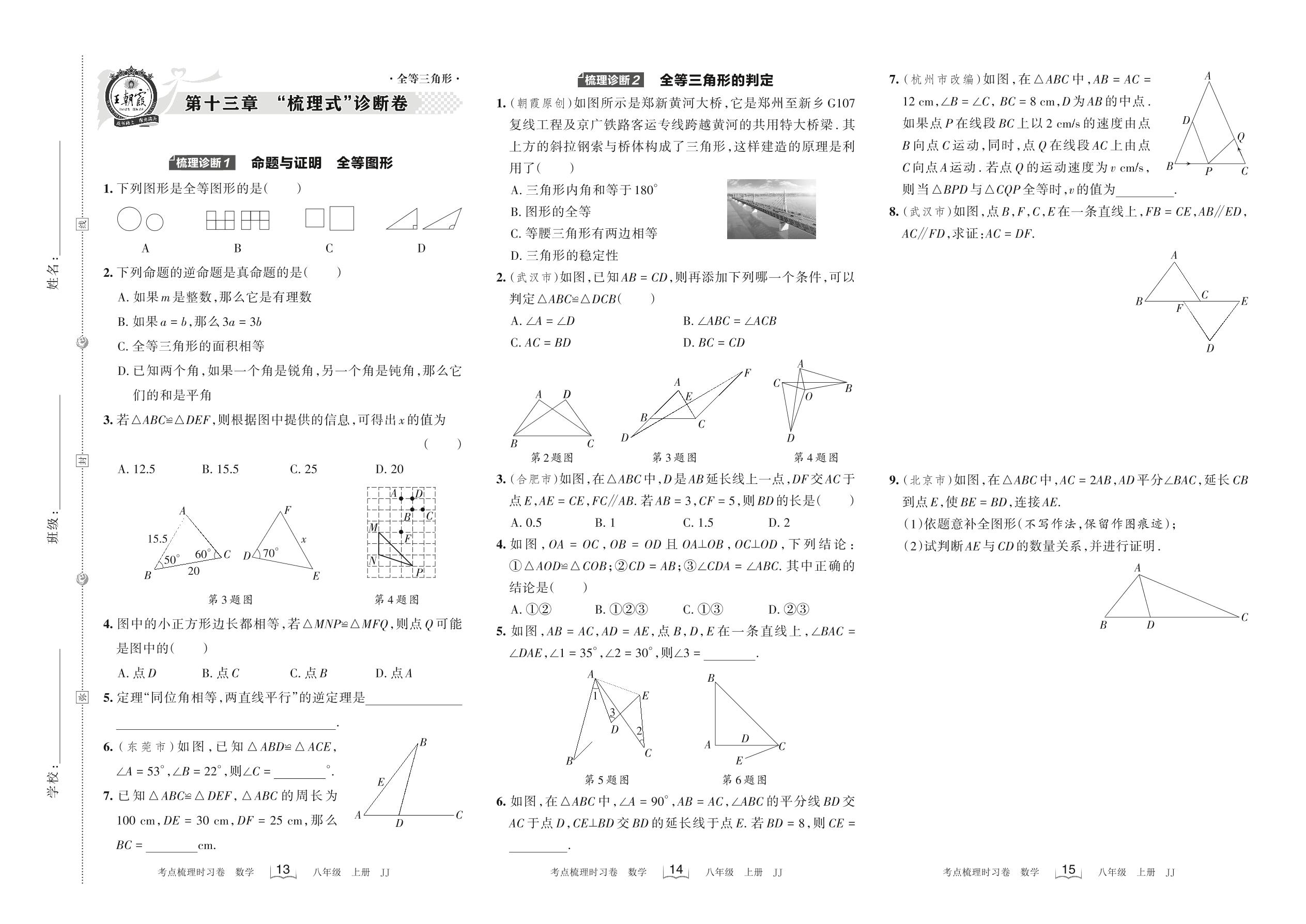 2022上册八年级数学冀教版 第十三章 “梳理式”诊断卷