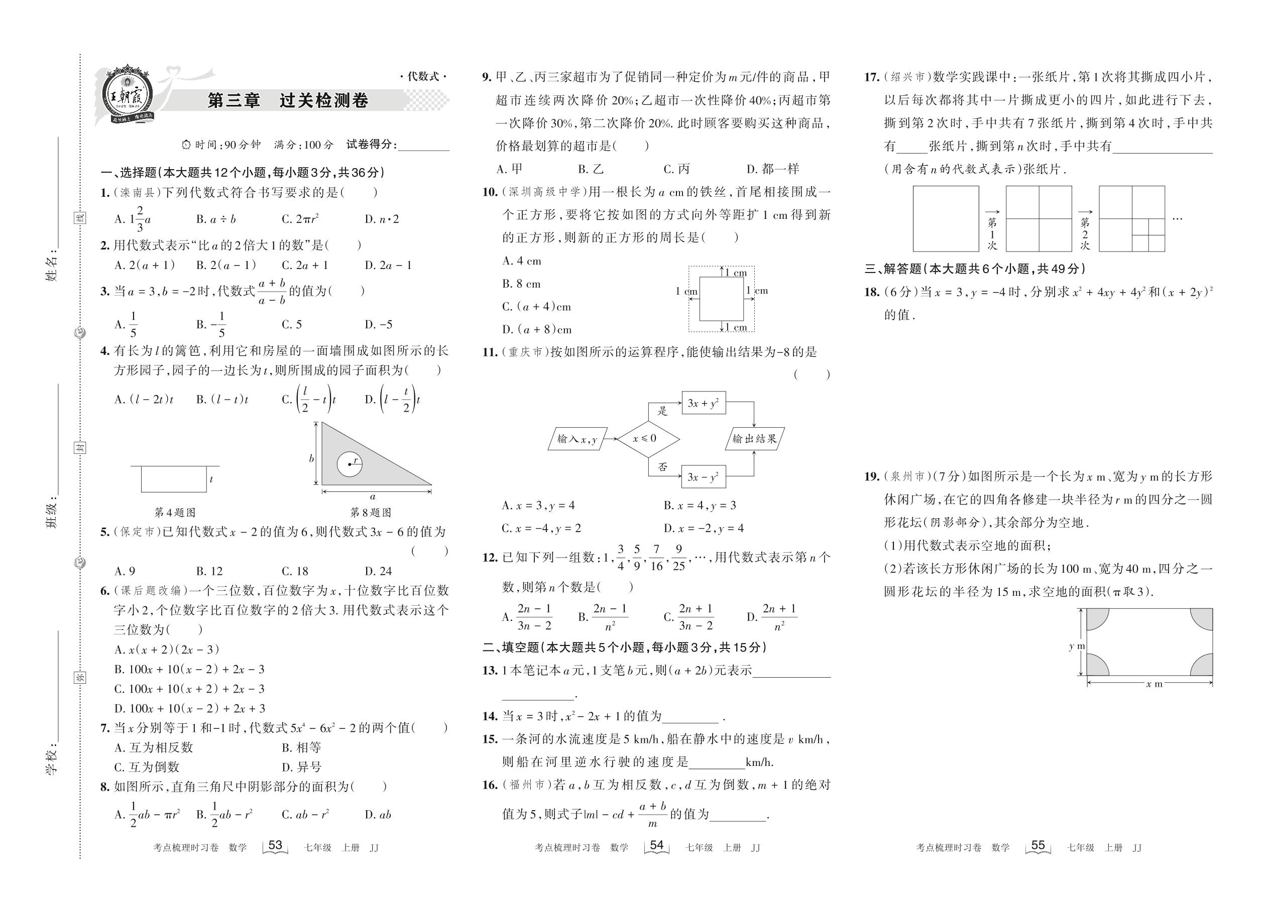 2022上册七年级数学冀教版 第三章 过关检测卷