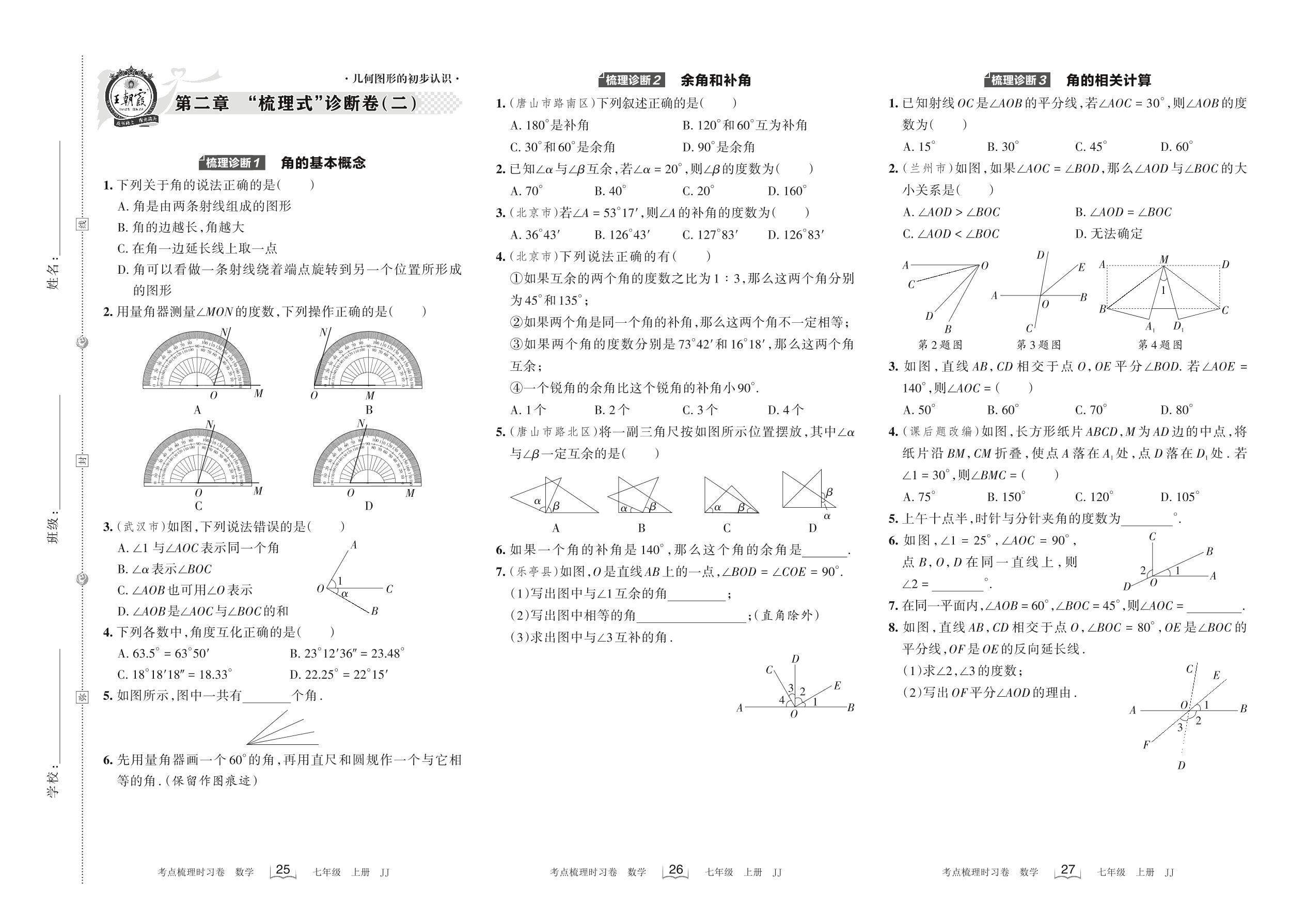 2022上册七年级数学冀教版 第二章 “梳理式”诊断卷(二)