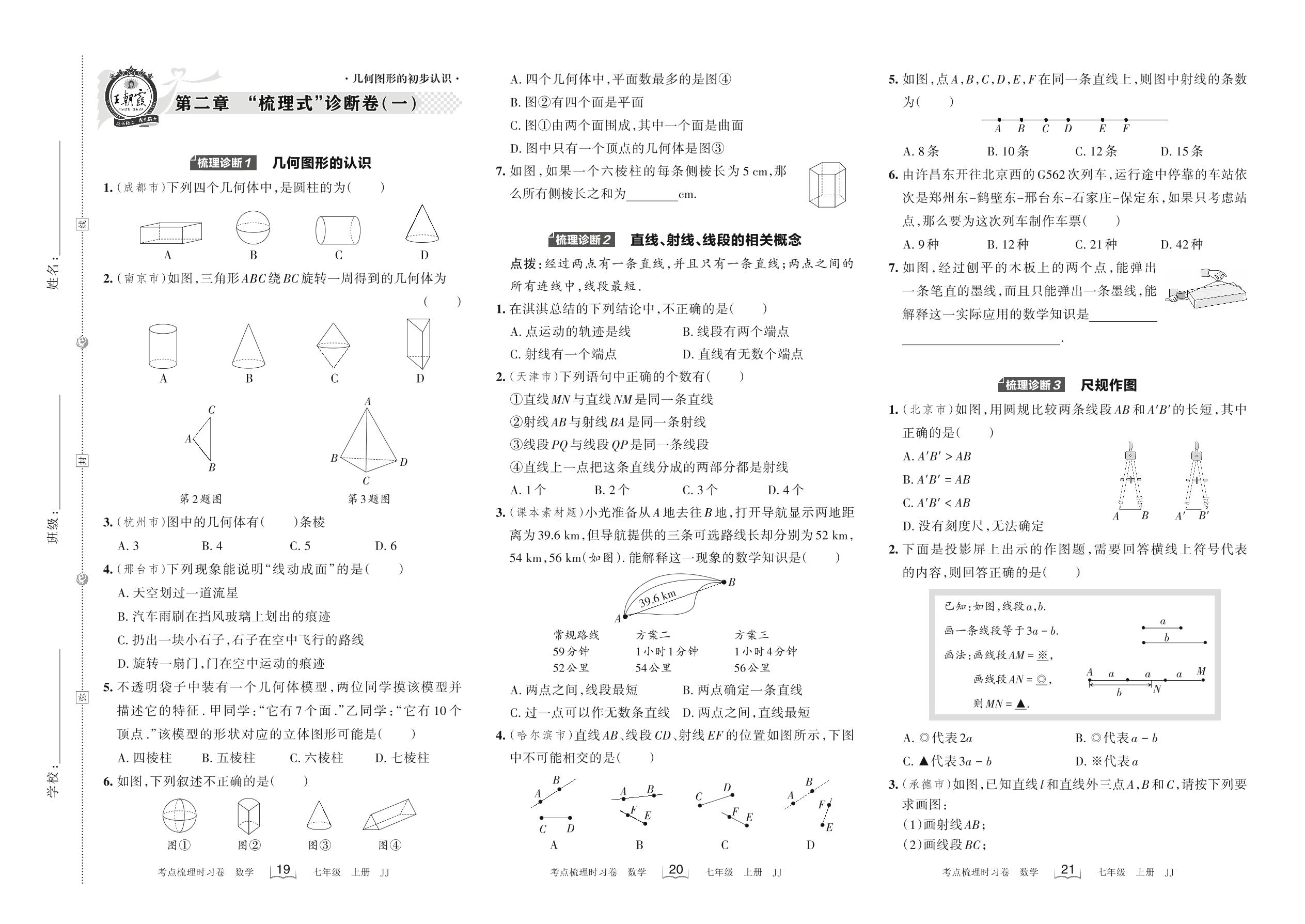 2022上册七年级数学冀教版 第二章 “梳理式”诊断卷(一)