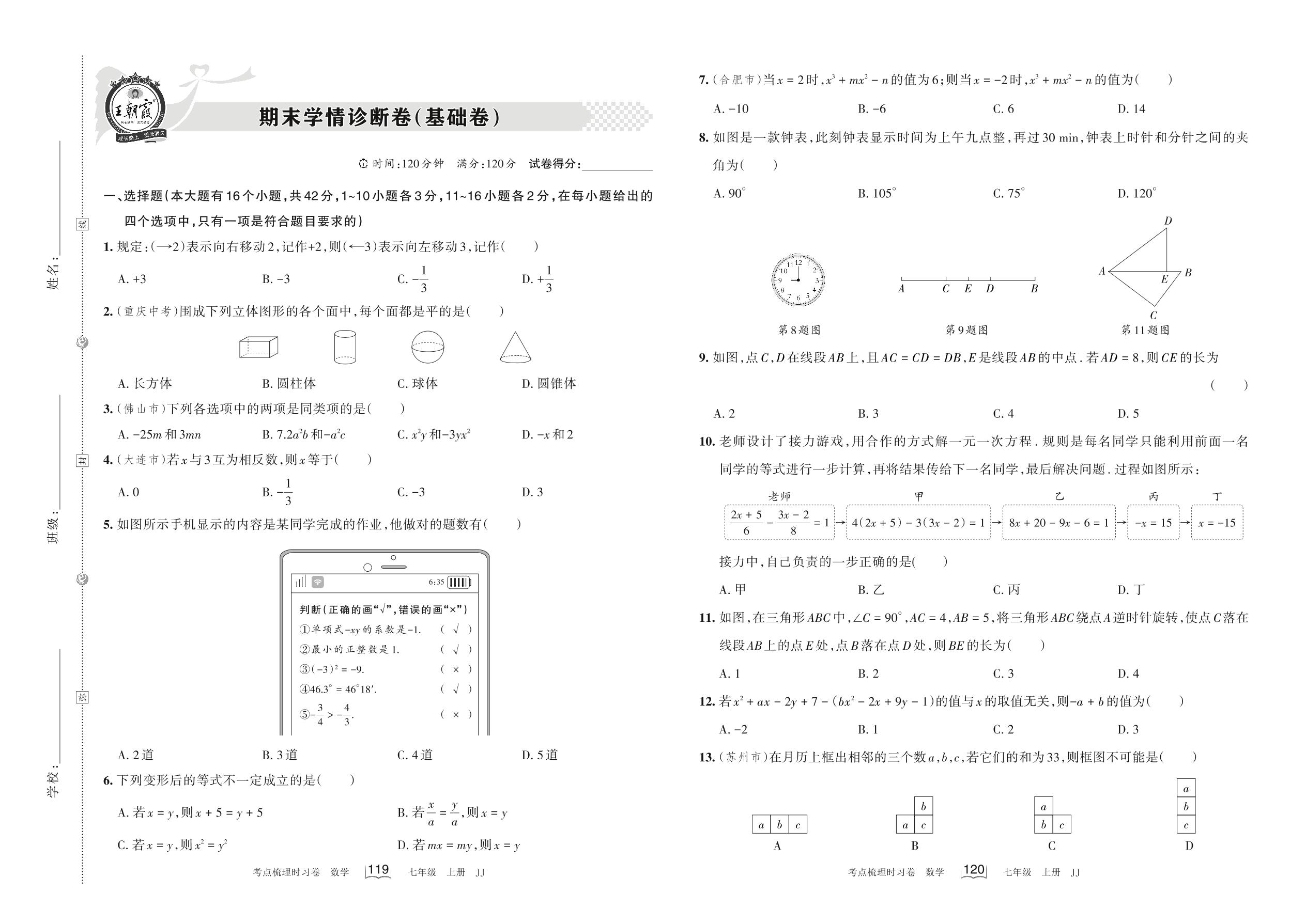 2022上册七年级数学冀教版 期末学情诊断卷(基础卷)
