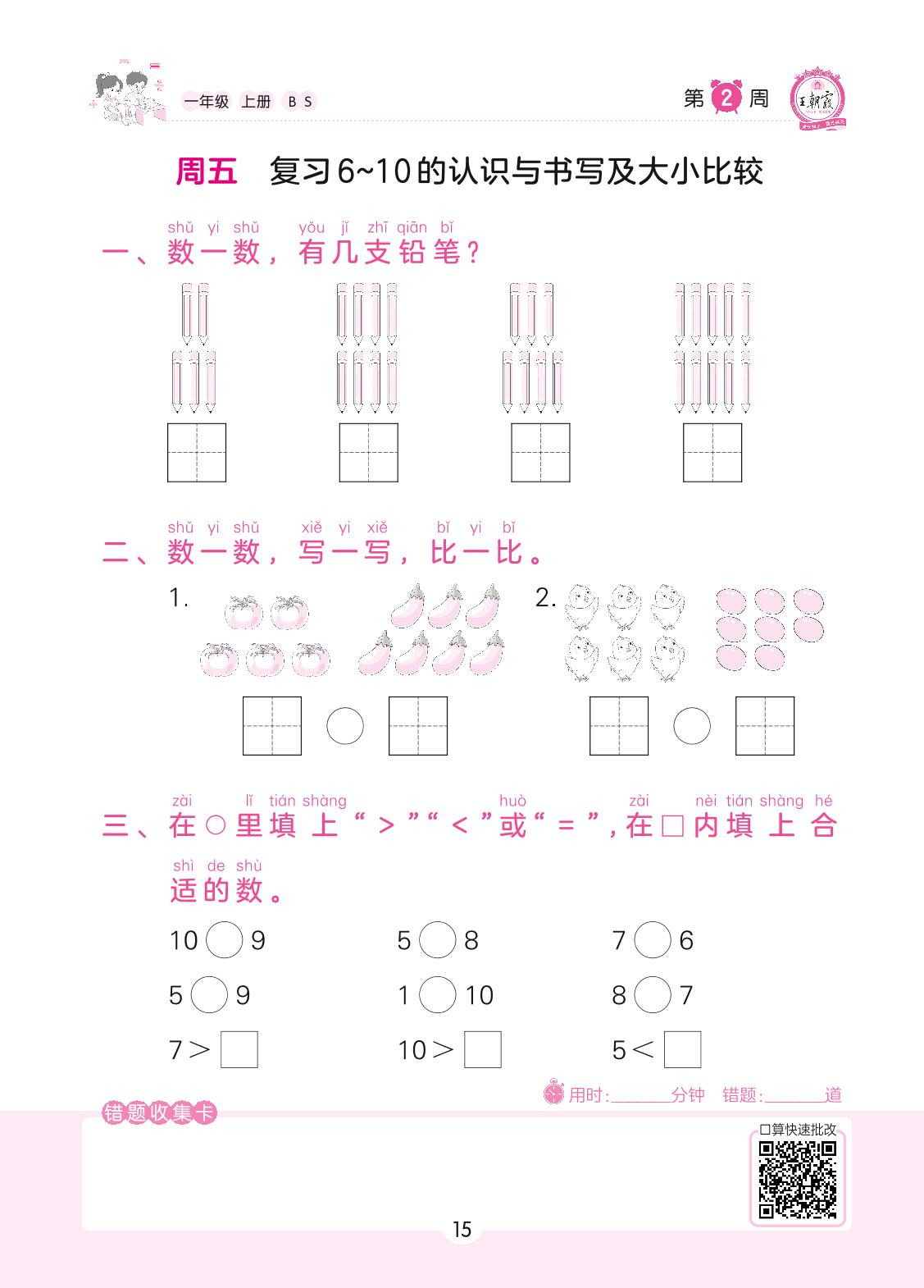 2022上册一年级数学北师版 第2周 周五